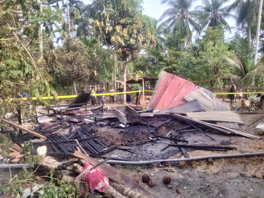 Rumah berkonstruksi kayu milik korban, Safwana (39), ludes terbakar akibat ulah SF yang diduga sengaja menyulut api dengan melemparkan botol berisi bahan bakar minyak (BBM).