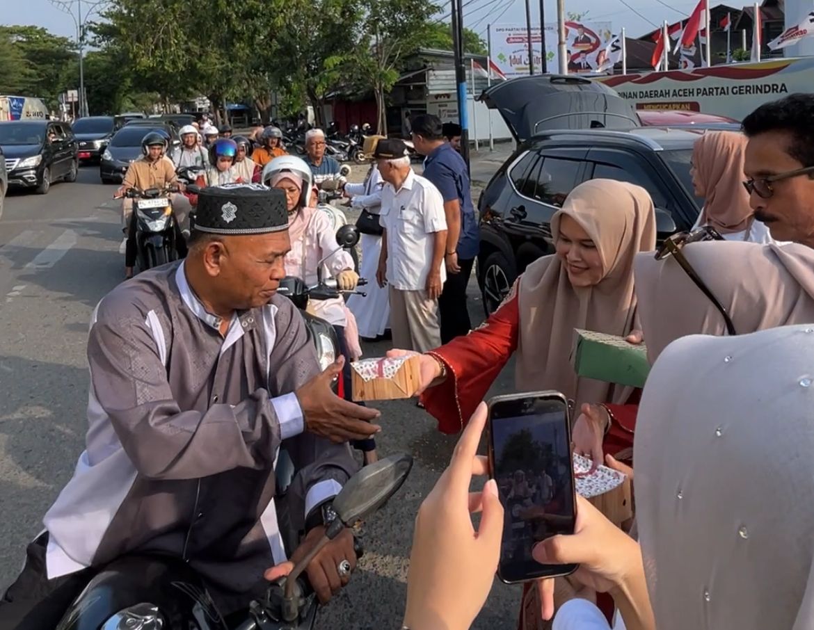Menariknya, acara berbagi takjil kepada para pengendara ini dipimpin langsung oleh ibu Wakil Gubernur Aceh, Ny. Mukarrahmah beserta Sekretaris Gerindra Aceh yang juga Anggota DPR Aceh, Abdurrahman Ahmad.