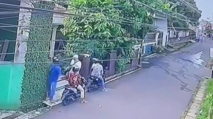 Dari video yang beredar, terlihat terduga pelaku berjumlah empat orang berboncengan dua motor datang ke lokasi. Mereka dengan santainya beraksi saat pagi hari.
