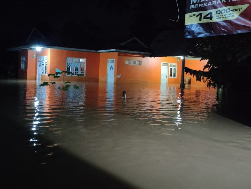 Peristiwa ini dipicu hujan dengan intensitas tinggi pada pukul 16.00 WITA hingga menyebabkan aliran sungai meluap hingga menggenangi pemukiman warga.