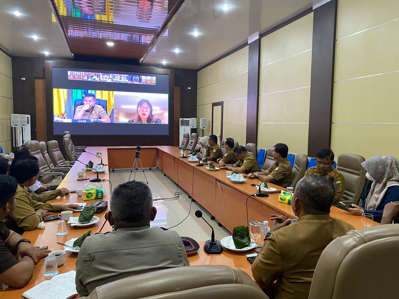 DISTORI.ID – Bupati Aceh Besar Syech Muharram Idris yang diwakili Asisten II Sekdakab M Ali mengikuti Rapat Koordinasi Pengendalian Inflasi secara virtual dengan Kemendagri RI di Aula Sanusi Wahab, Kantor Bupati Aceh Besar di Kota Jantho, Senin (14/4/2025).