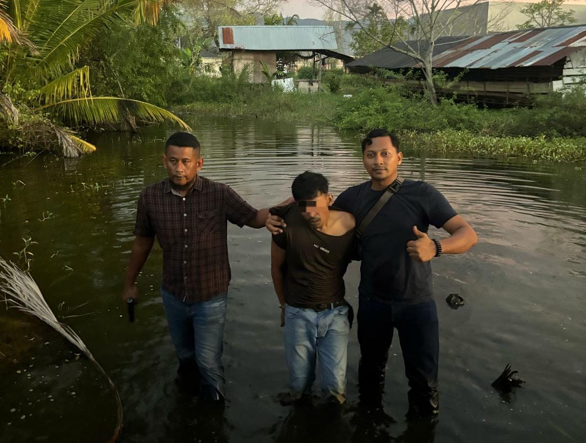 Penangkapan itu diwarnai aksi dramatis, di mana pelaku MF berupaya kabur dari kejaran petugas dengan nekat lompat ke rawa-rawa.