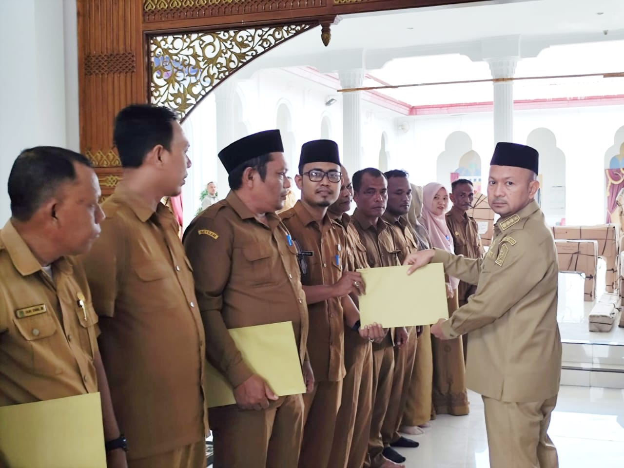 DISTORI.ID – Bupati Aceh Jaya, Safwandi, S.Sos, menyerahkan Surat Keputusan (SK) Pelaksana Tugas (Plt) kepada sejumlah pejabat di lingkungan Pemerintah Kabupaten (Pemkab) Aceh Jaya.