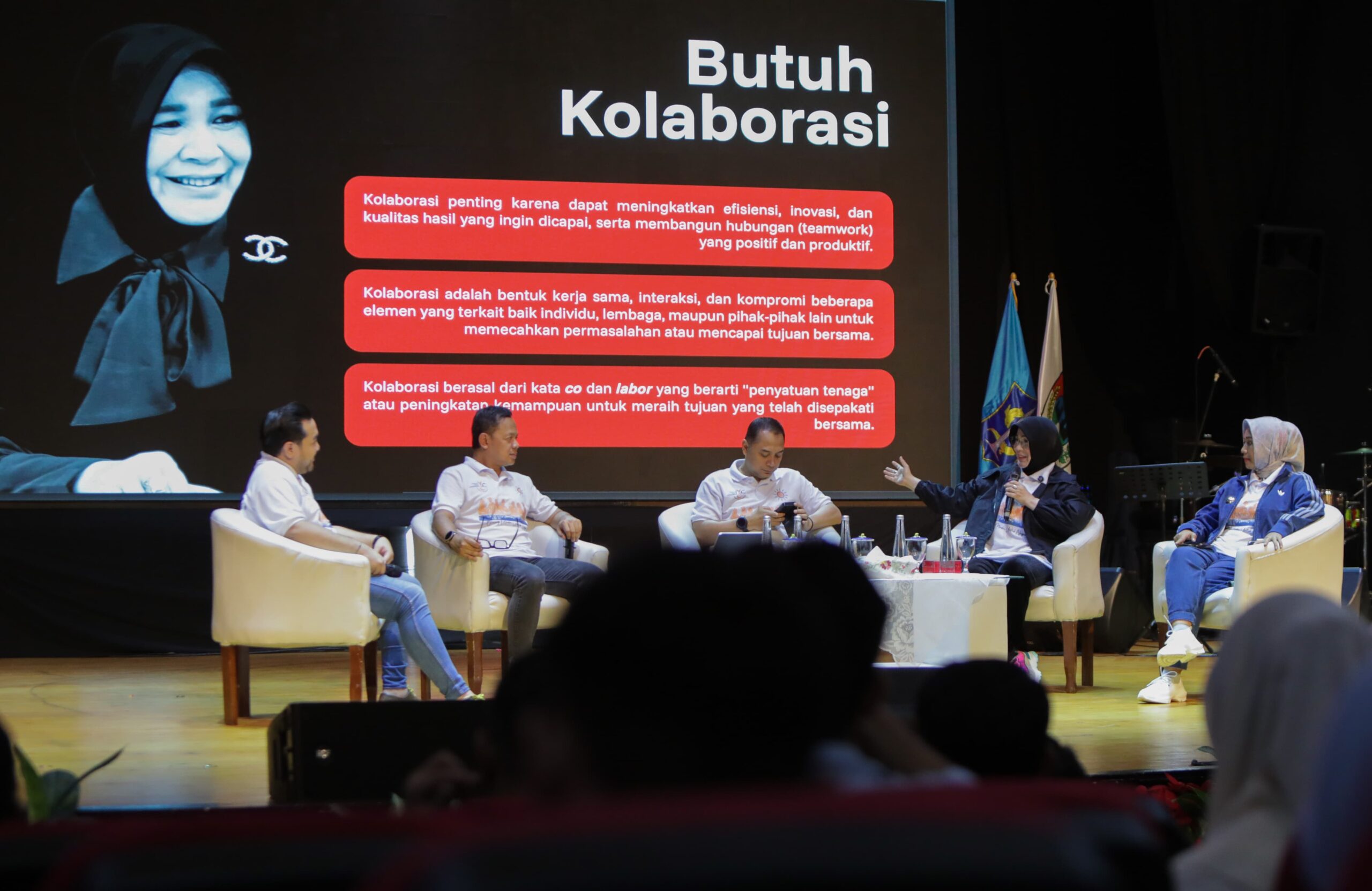 Wali Kota Illiza memberikan motivational speech bersama Wamendagri Bima Arya, Ketua Apeksi Edi Cahyadi, dan Wali Kota Mojokerto, Ika Puspitasari.
