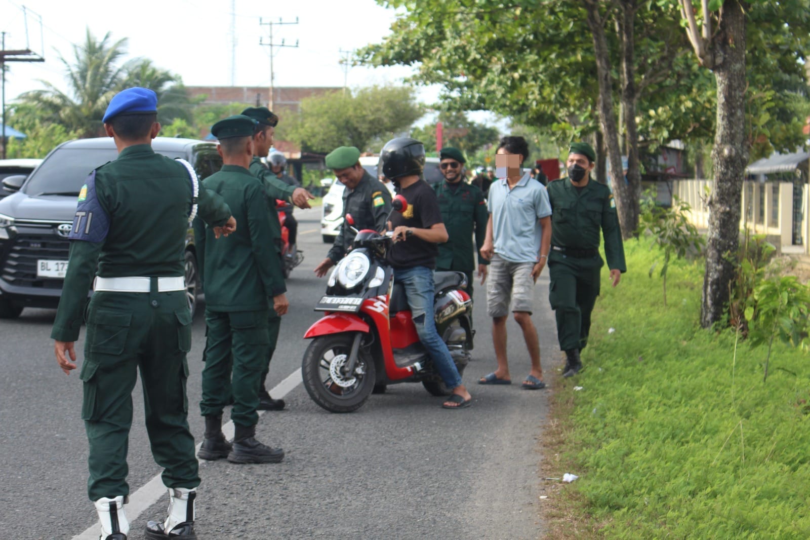 DISTORI.ID – Dalam rangka menjaga ketertiban umum, ketenteraman masyarakat, serta menegakkan pelaksanaan Syariat Islam, Satuan Polisi Pamong Praja dan Wilayatul Hisbah (Satpol PP dan WH) Kabupaten Aceh Besar menggelar razia busana Islami di kawasan Jalan Cut Nyak Dhien, Ajun, Kecamatan Peukan Bada, Aceh Besar, Sabtu (10/5/2025).