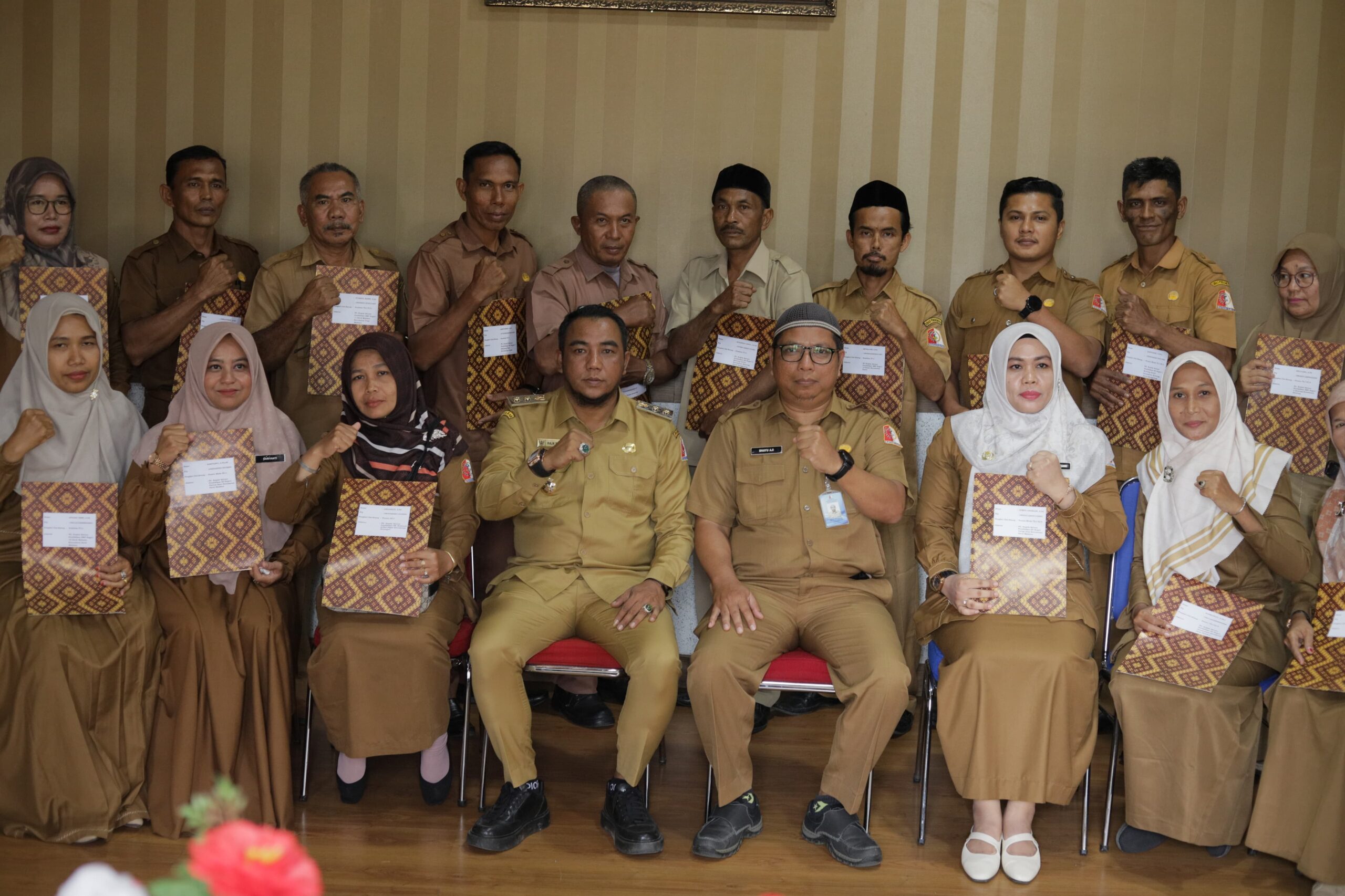 Penyerahan tersebut berlangsung di ruang kerja Wakil Bupati, Kompleks Perkantoran Suka Makmue, dan dihadiri oleh Kepala Dinas Pendidikan Kabupaten Nagan Raya yang diwakili oleh Kepala Bidang Pembinaan Ketenagaan dan Pembantuan, Bhayu Aji, S.Pd., M.T., serta sejumlah pejabat terkait lainnya.