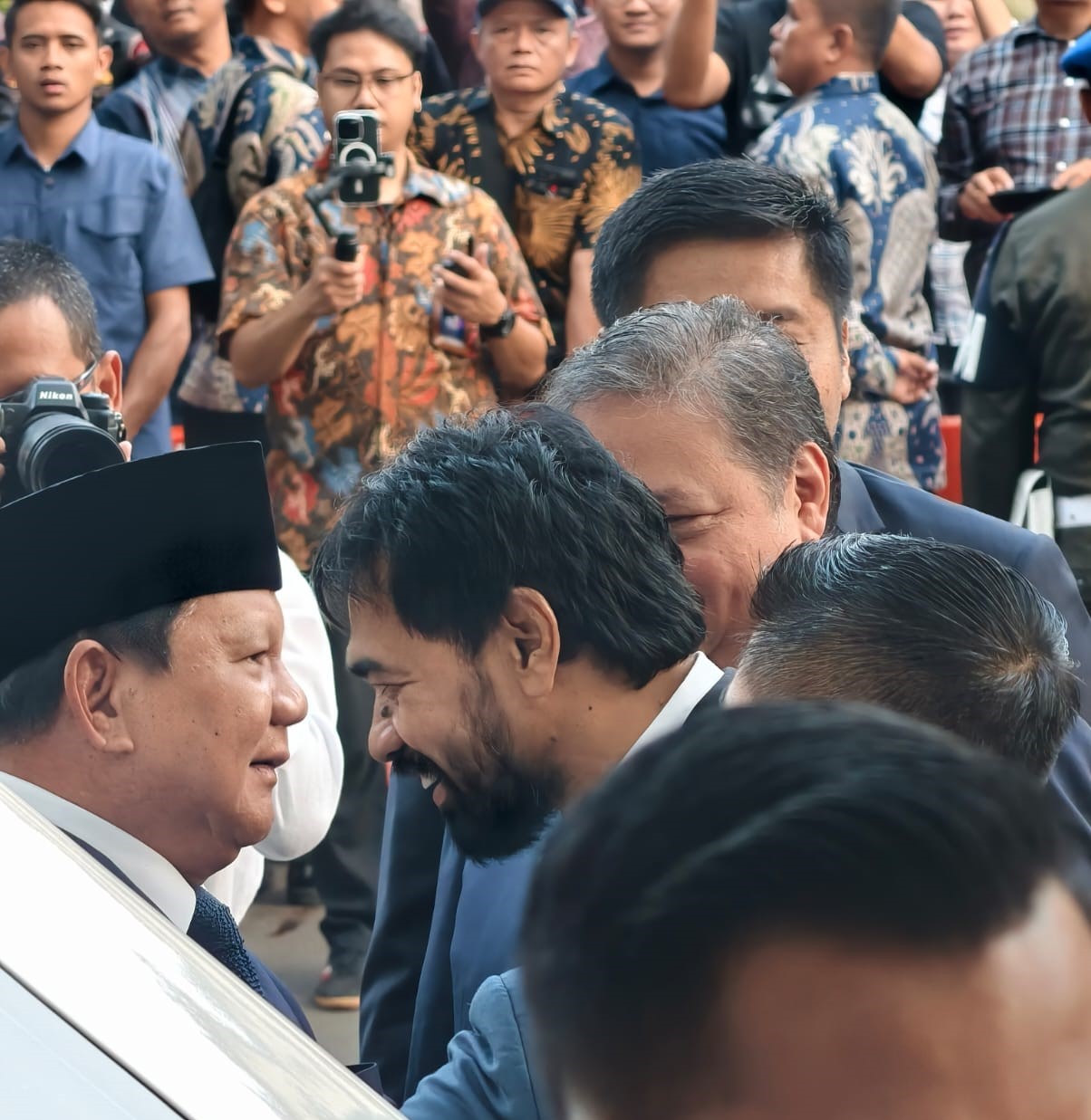 Muzakir Manaf, yang mengenakan setelan jas hitam, tampak antusias mengikuti kegiatan bertaraf internasional yang secara resmi ditutup oleh Presiden Prabowo Subianto.