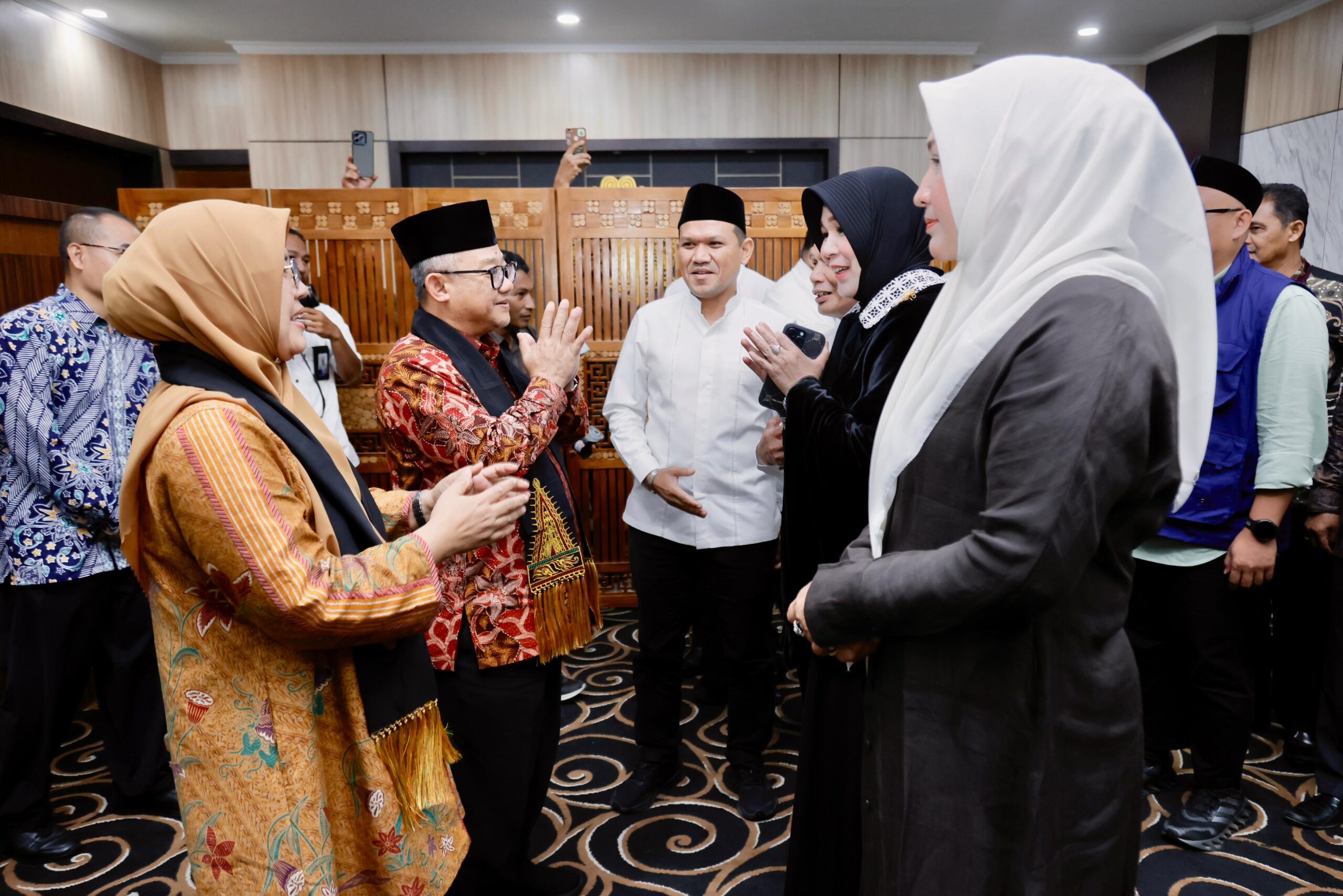 DISTORI.ID – Wakil Gubernur Aceh, Fadhlullah, bersama Ketua TP PKK Aceh, Marlina Muzakir, menyambut kedatangan Menteri Pendidikan Dasar dan Menengah RI, Abdul Mu’ti, di Bandara Internasional Sultan Iskandar Muda, Aceh Besar, Jumat, 27 Juni 2025.