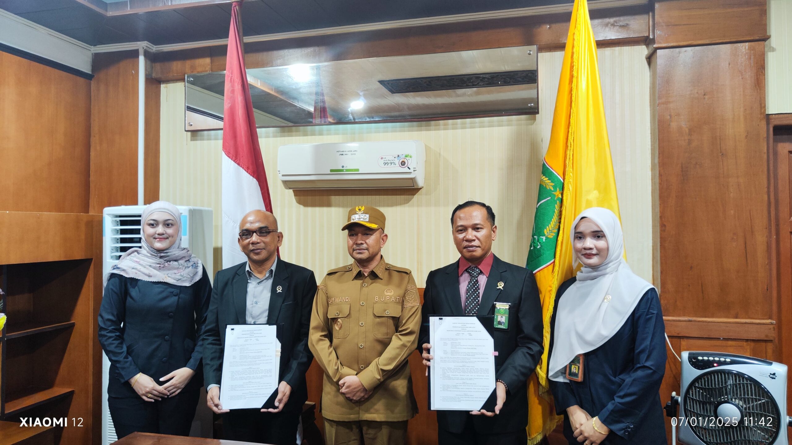 Penyerahan dokumen diserahkan langsung oleh Bupati Aceh Jaya, Safwandi, melalui penandatanganan Naskah Perjanjian Hibah Daerah (NPHD) di Ruang Rapat Bupati pada hari selasa, (1/7/2025).