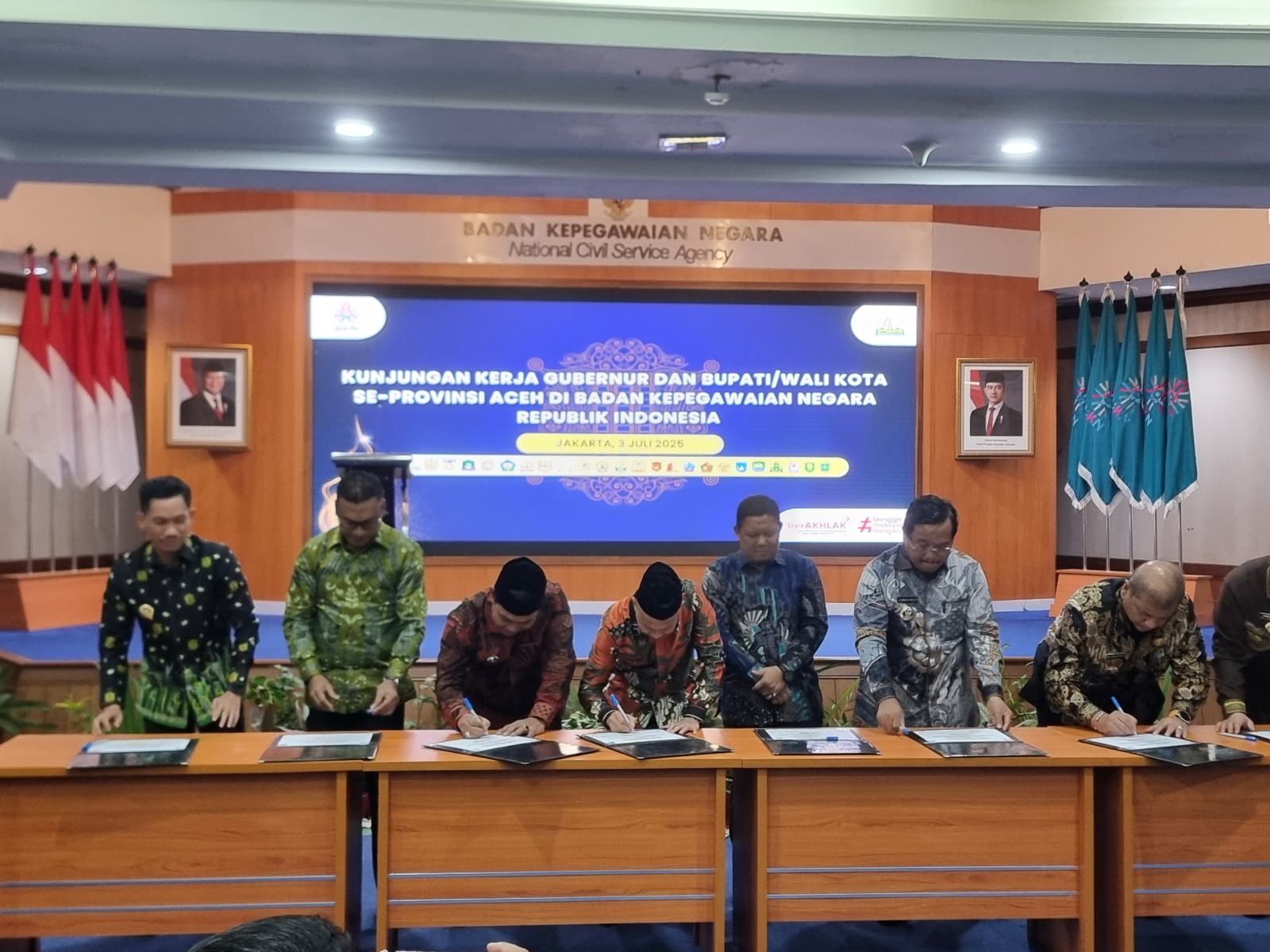 Di akhir rangkaian kegiatan, Gubernur Aceh dan para Bupati dan Wali Kota se-Aceh, serta pimpinan BKN RI melakukan penandatanganan Komitmen Bersama sebagai bentuk dukungan nyata terhadap agenda reformasi birokrasi dan penguatan manajemen ASN secara nasional.