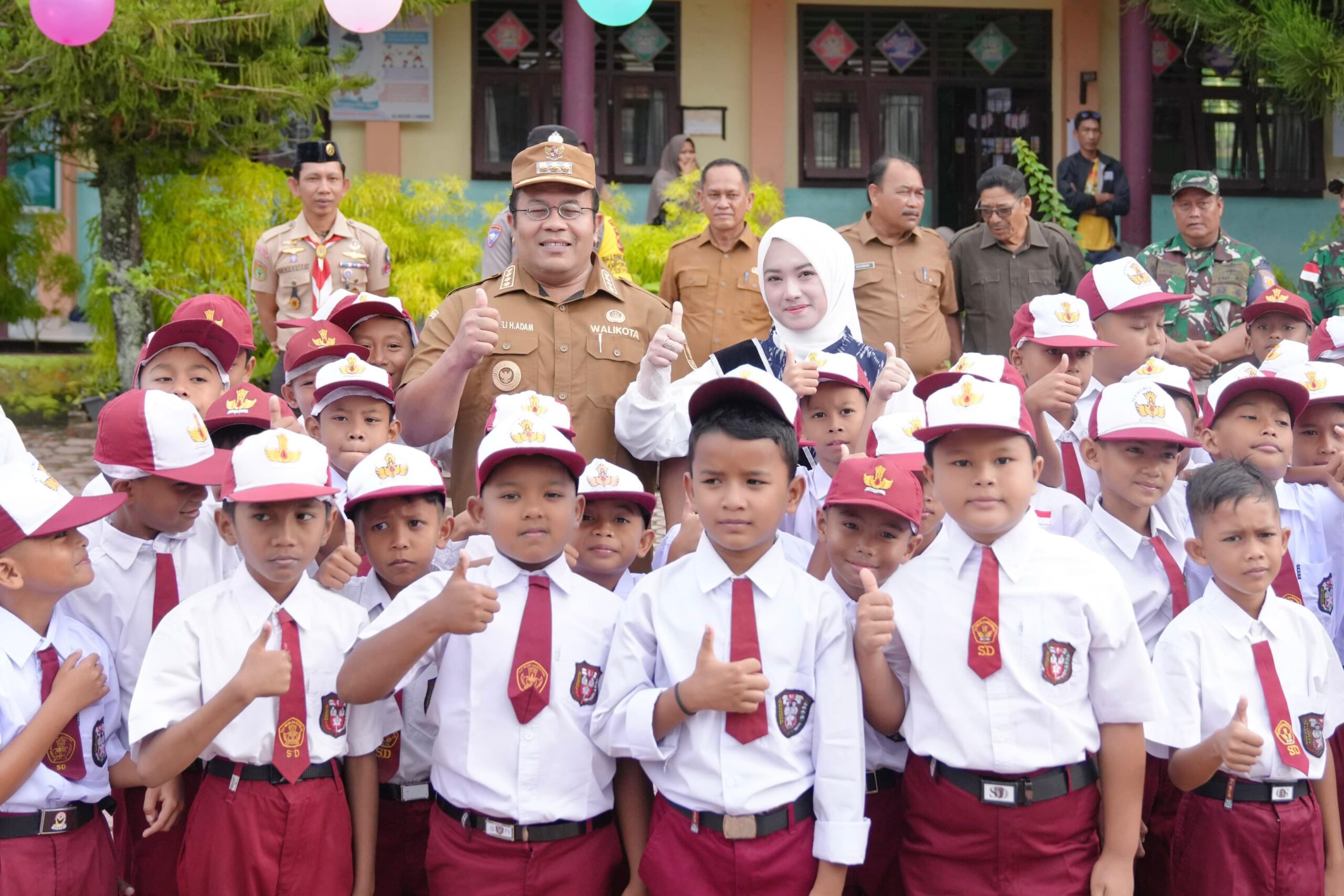 Memastikan proses MPLS berjalan lancar, Wali Kota Sabang Zulkifli Adam didampingi Bunda PAUD Kota Sabang Ny. Nuri Zulkifli Adam beserta jajaran, melakukan monitoring hari pertama masuk sekolah ke SD Negeri 3 Sabang, di Gampong Kuta Timu, Senin (14/7).