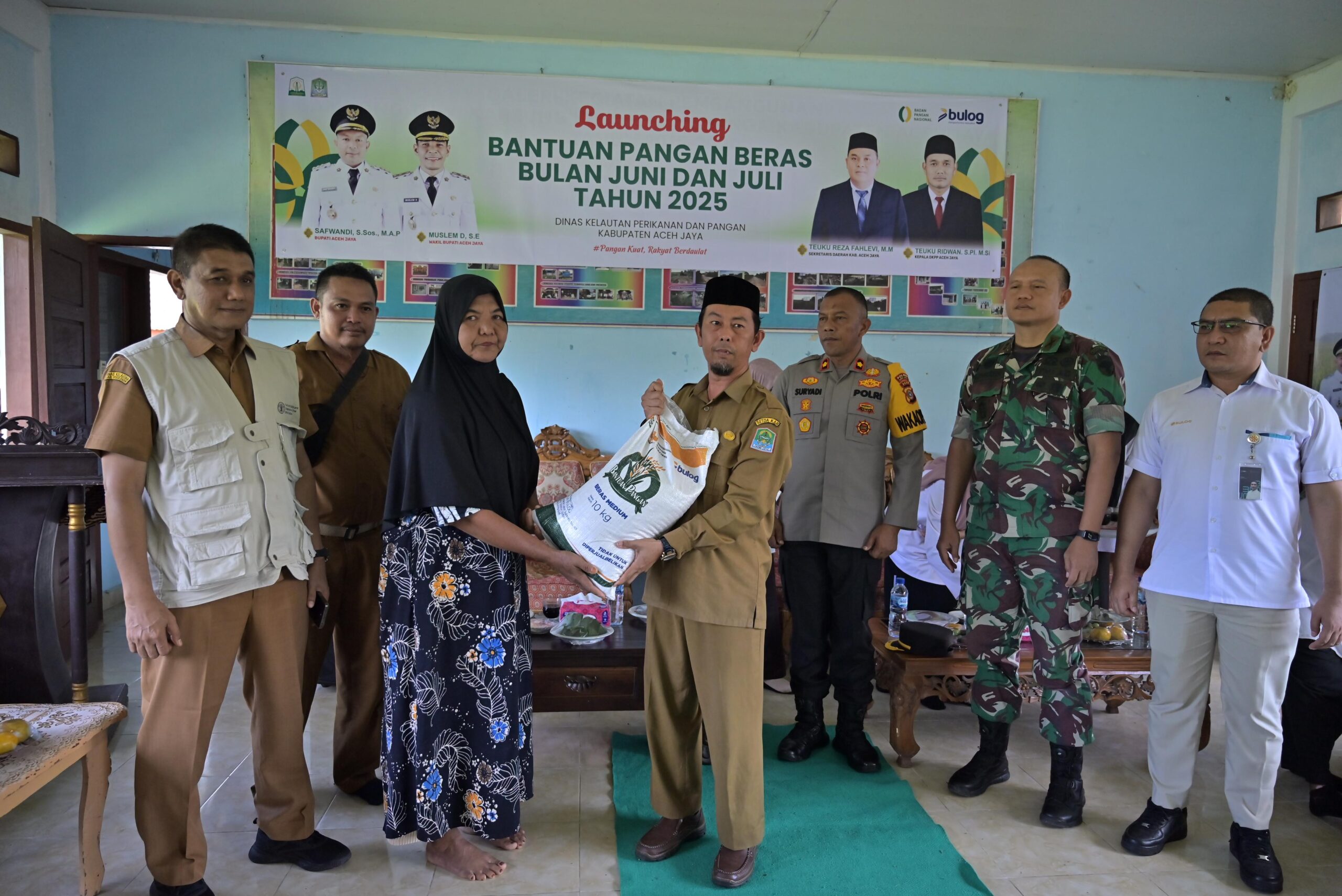 Dalam kesempatan tersebut, Bupati Aceh Jaya, Safwandi, yang diwakili oleh Asisten II Perekonominan dan Pembangunan, Jonni Sahputra, secara simbolis menyerahkan bantuan beras kepada penerima manfaat.