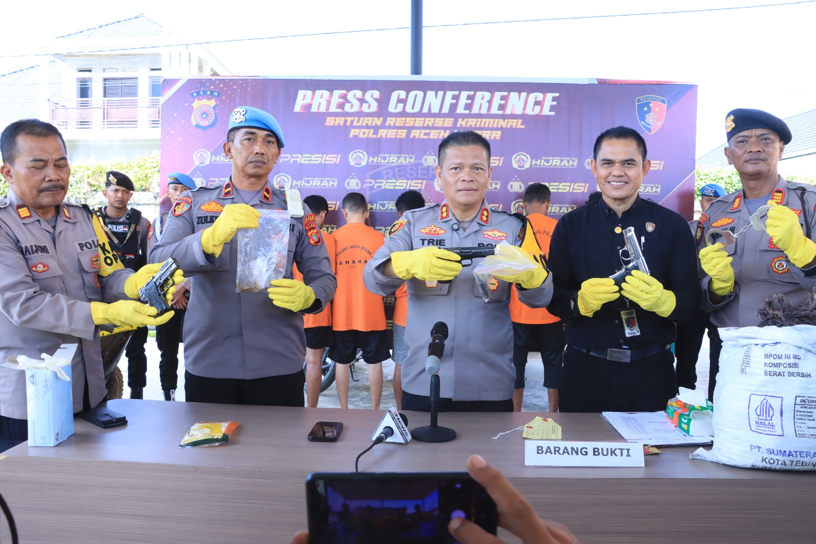 Sebelumnya, polisi menangkap seorang pemuda berinisial S alias Sinyak (21), warga Tanah Luas, Aceh Utara, atas dugaan kepemilikan senjata api ilegal.