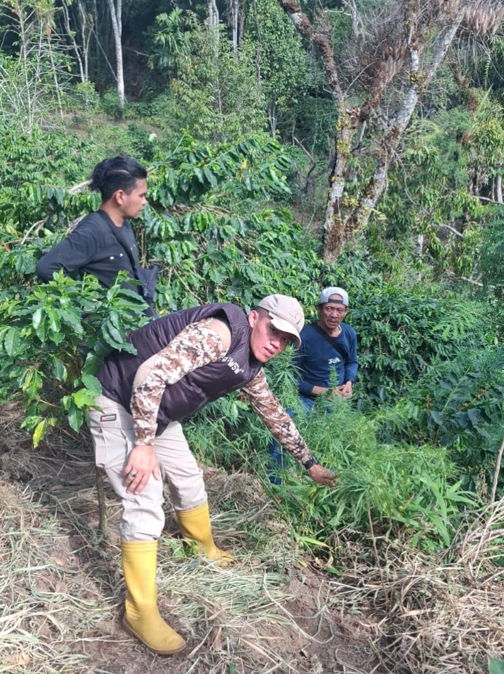 Menindaklanjuti laporan tersebut, tim Opsnal Satresnarkoba yang dipimpin langsung oleh Kasat Narkoba segera melakukan penyelidikan ke lokasi. Sekira pukul 15.00 WIB, petugas berhasil menemukan ladang ganja yang ditanam di antara pepohonan kopi.