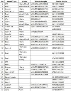 Berikut data 32 unit sepeda motor yang berhasil diamankan: