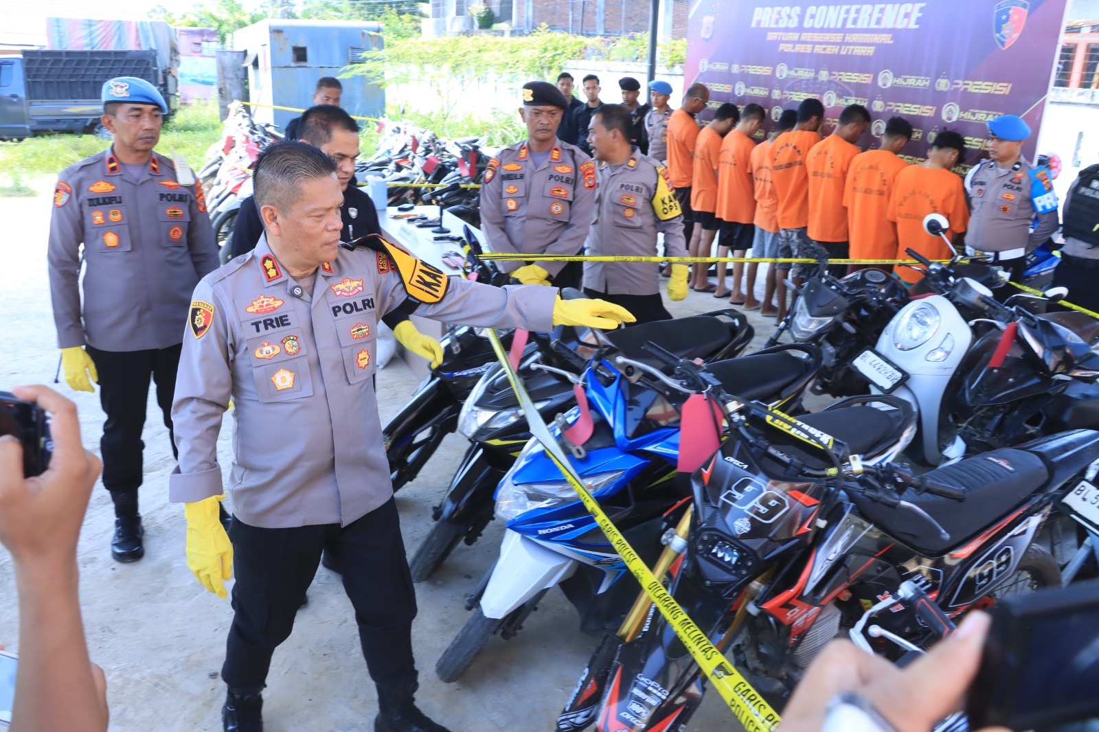 Sebanyak 32 unit sepeda motor berbagai jenis telah diamankan dan saat ini berada di Mapolres Aceh Utara.
