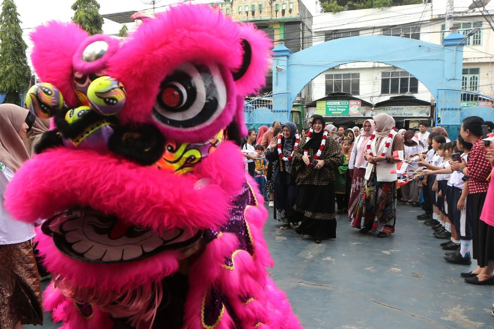 Kedatangan mereka disambut hangat oleh siswa dengan penampilan tari barongsai, ranup lampuan, dan atraksi karate yang memukau.