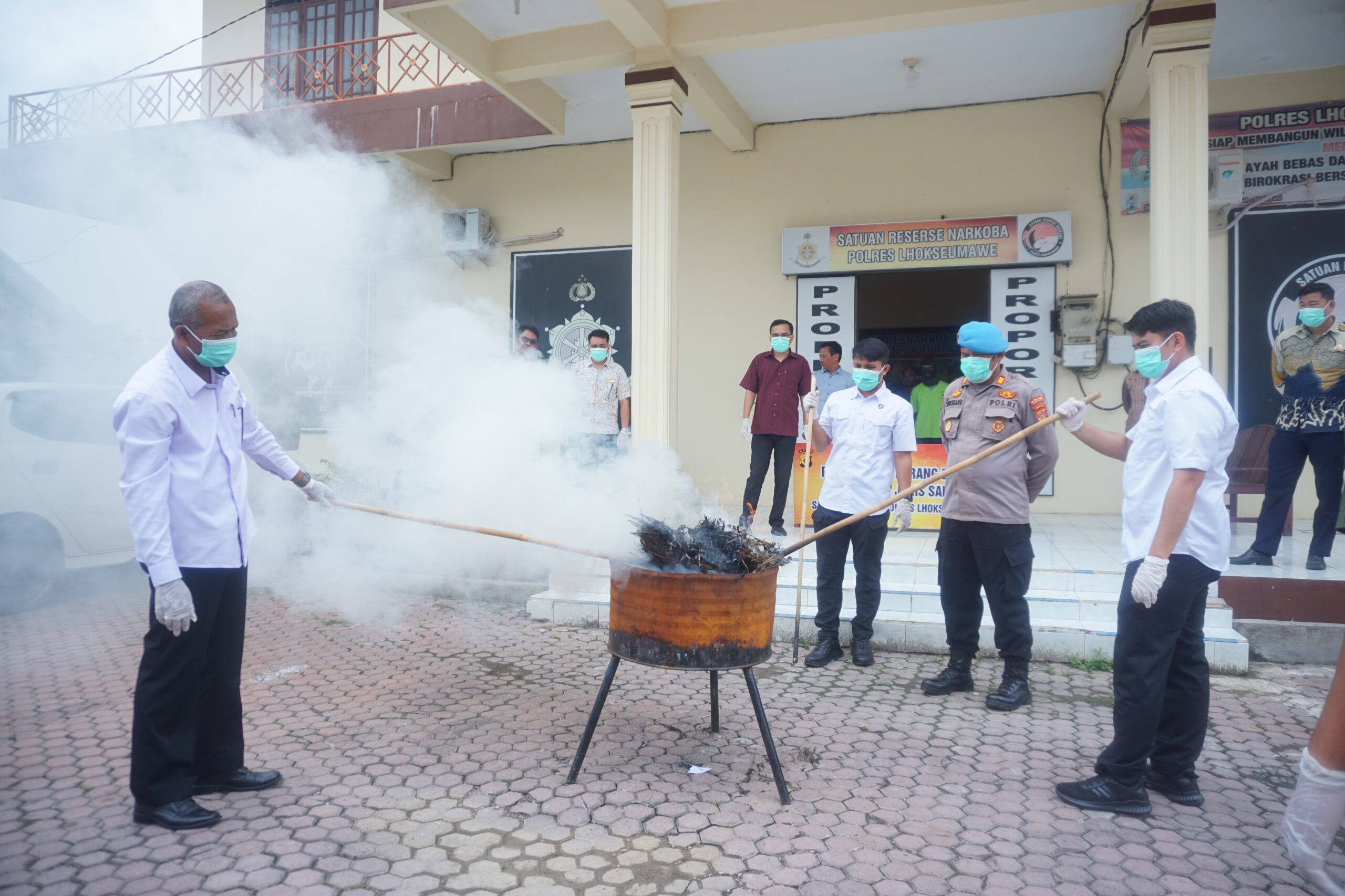 “Pemusnahan ini adalah bagian dari komitmen Polres Lhokseumawe dalam memberantas peredaran narkoba serta bentuk transparansi dalam penanganan kasus tindak pidana narkotika,” ujarnya.