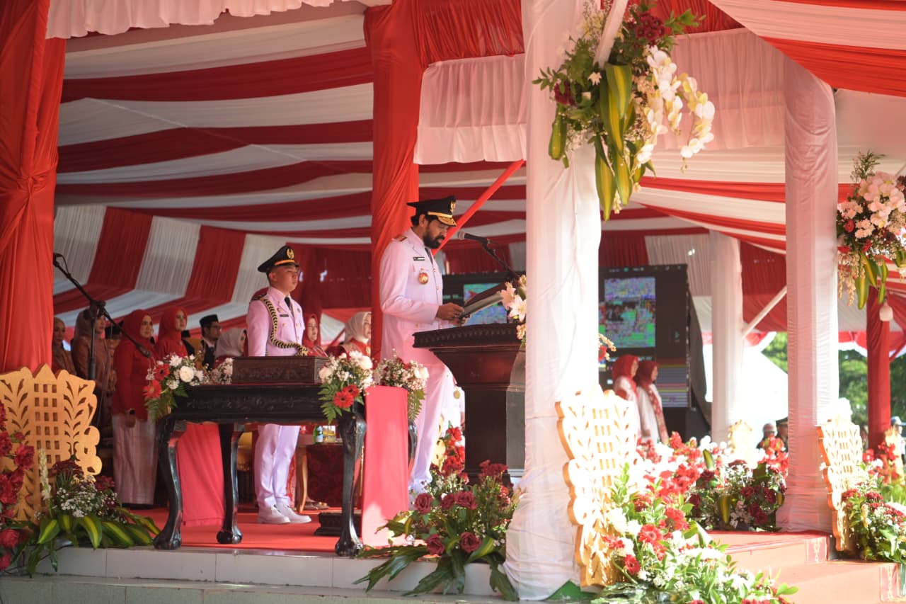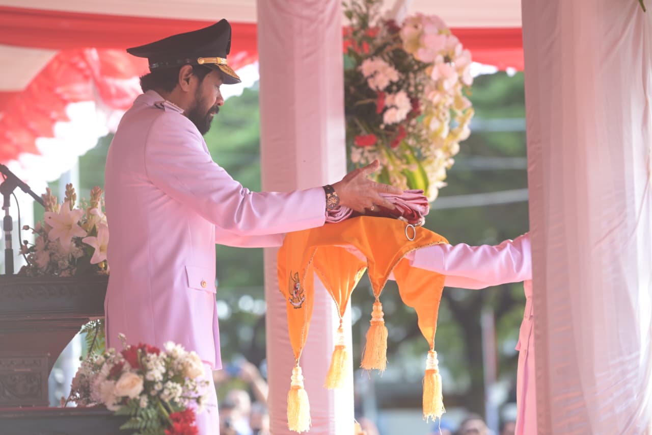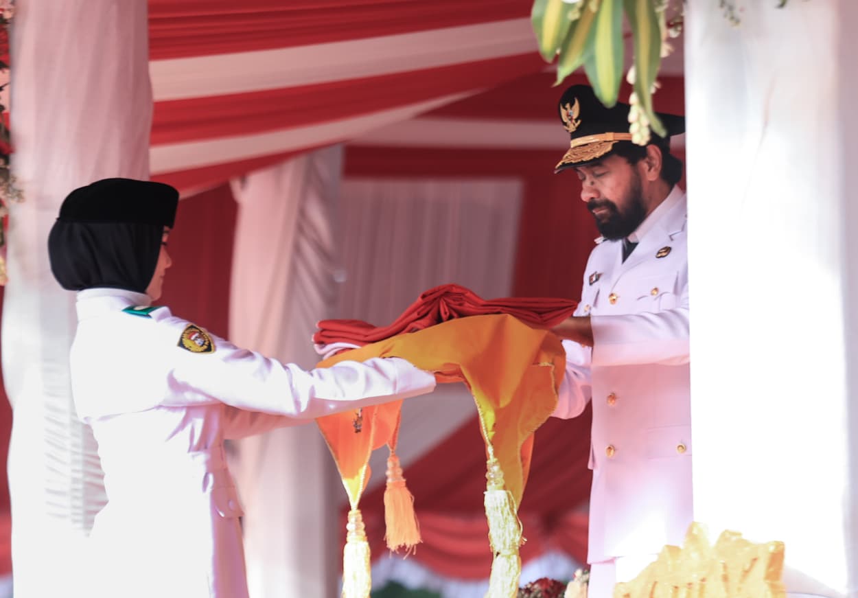 DISTORI.ID – Gubernur Aceh, Muzakir Manaf (Mualem), untuk pertama kalinya bertindak sebagai inspektur upacara peringatan HUT ke-80 Kemerdekaan RI di Lapangan Blang Padang, Banda Aceh, Minggu (17/8/2025). Upacara berlangsung khidmat dengan dihadiri jajaran Forkopimda, pejabat pemerintah, prajurit TNI-Polri, ASN, pelajar, hingga masyarakat umum. Gubernur didampingi oleh istrinya, Marlina Muzakir, sepanjang prosesi.
