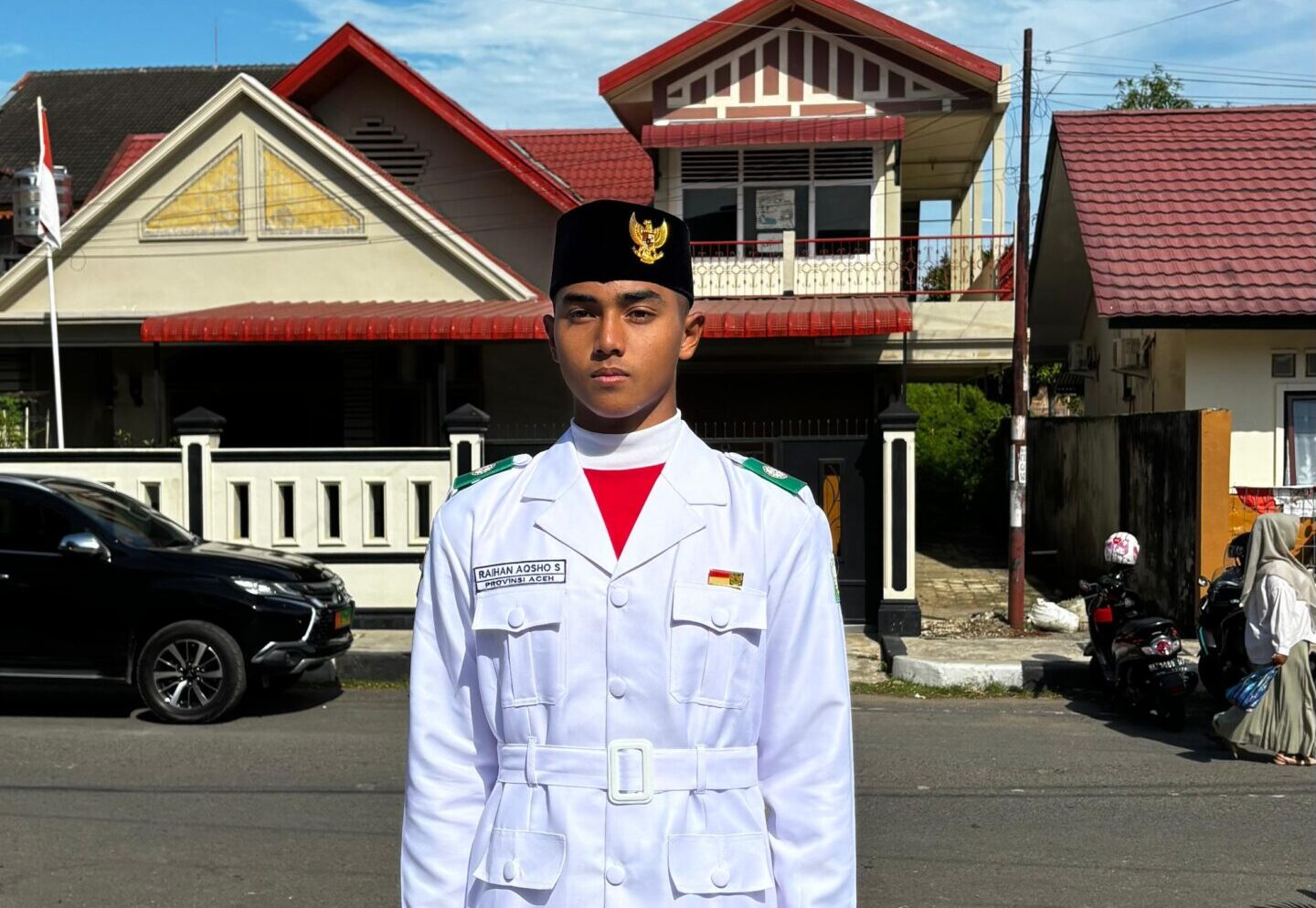 DISTORI.ID – Raihan Aqsho S, siswa kelas XI Finlandia SMA Negeri 2 Banda Aceh, mendapat kehormatan besar sebagai pengibar bendera pada upacara peringatan HUT ke-80 Republik Indonesia di Provinsi Aceh, Minggu (17/8/2025). Lebih membanggakan lagi, Aqsho dipercaya bertugas sebagai pembentang Sang Merah Putih.