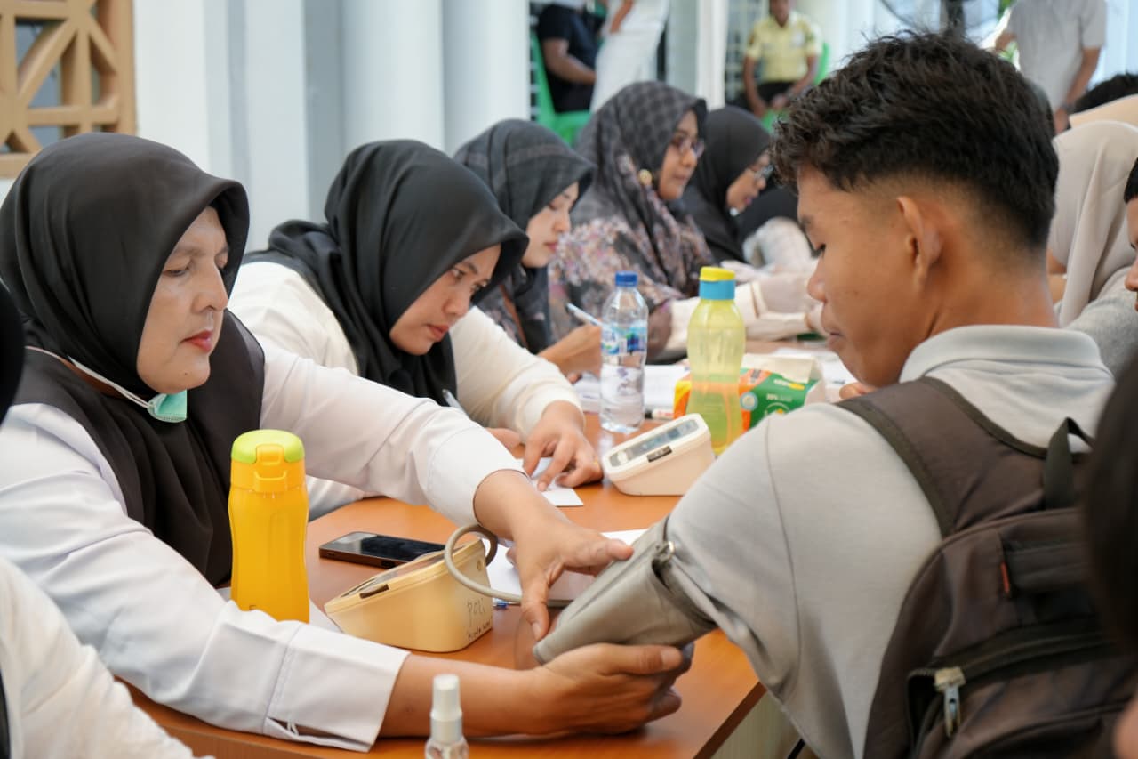 “Kami telah menempatkan sejumlah tenaga kesehatan untuk melakukan tes tekanan dan golongan darah, serta menghadirkan empat dokter masing-masing didampingi perawat untuk melakukan pemeriksaan kesehatan yang ditata menjadi empat meja pemeriksaan”, pungkas Hanipah. []