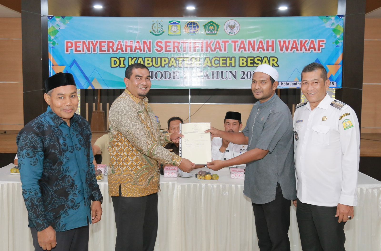 Pembagian sertifikat tanah wakaf kepada masing-masing nazir di wilayah Aceh Besar tersebut berlangsung di Kantor Kejari Aceh Besar, Jantho, Rabu (20/8/2025).