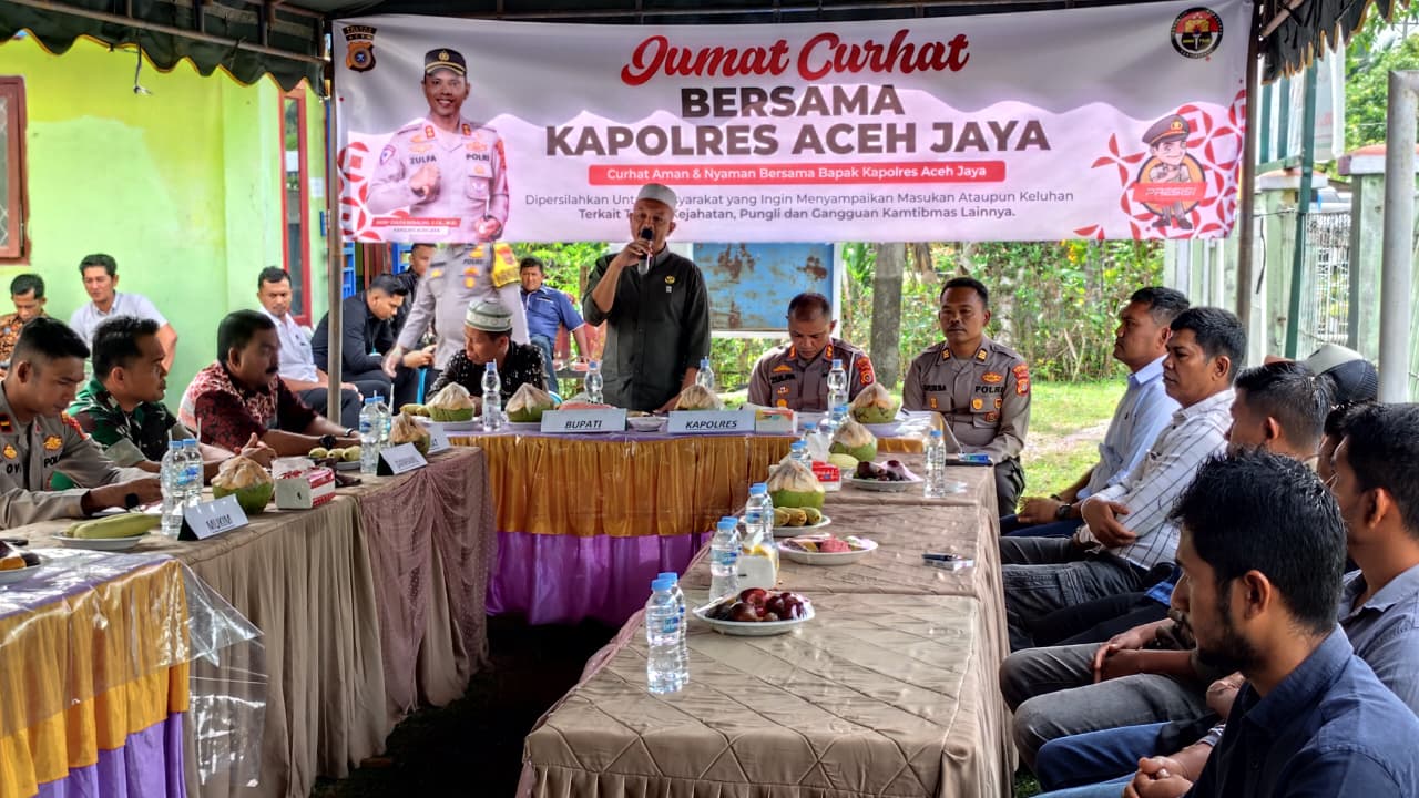 Kegiatan tersebut dihadiri Bupati Aceh Jaya, Safwandi, Anggota DPRK Aceh Jaya Muhammadiyah Isa, Kapolres Aceh Jaya AKBP Zulfa Renaldo, didampingi sejumlah pejabat utama Polres, Koramil Panga, Camat, serta para keuchik dalam Kemukiman Panga Pucok.