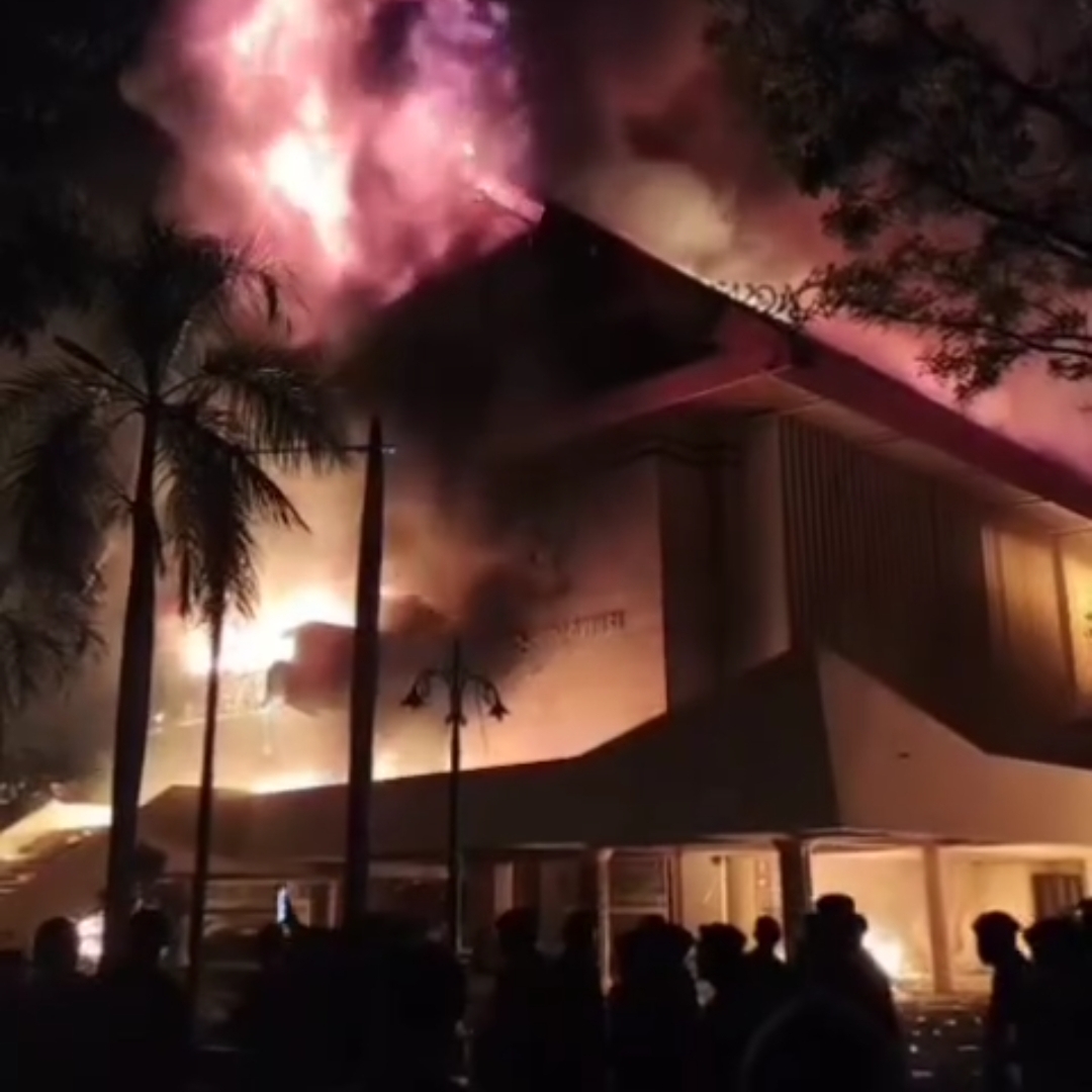 Hingga Sabtu (30/8) dini hari, api masih berkobar di gedung DPRD dan proses pemadaman terus berlangsung oleh tim Dinas Pemadam Kebakaran (Damkar) Kota Makassar.