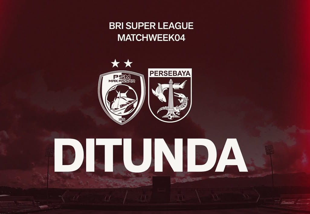 DISTORI.ID – Laga big match pekan keempat Super League 2025-2026 antara PSM Makassar versus Persebaya Surabaya dipastikan batal digelar.