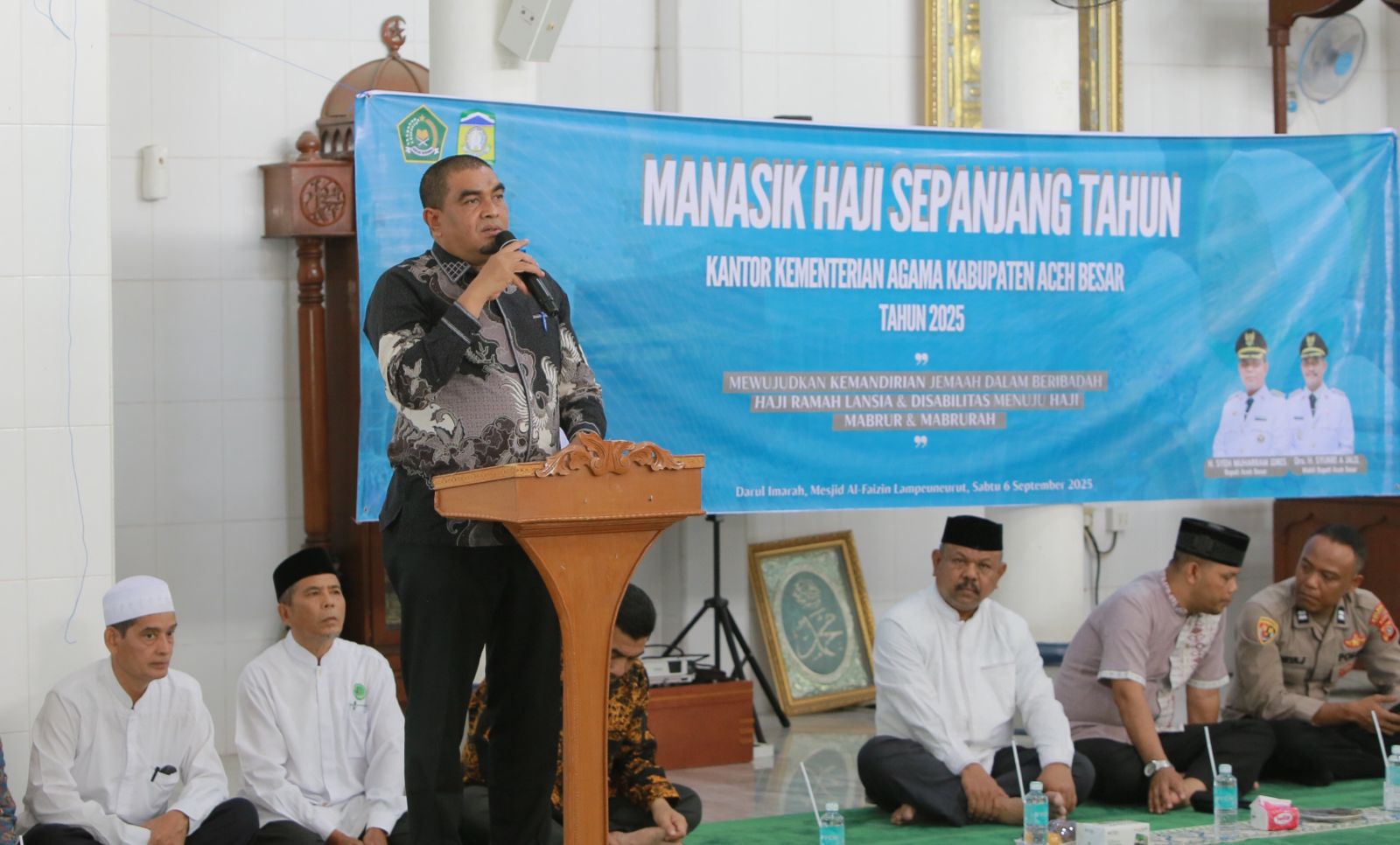 Manasik Haji Sepanjang Tahun dibuka oleh Kepala Dinas Syariat Islam Kabupaten Aceh Besar Rusdi di Masjid Al Faizin Lampeuneurut, Aceh Besar, Sabtu (6/9/2025).