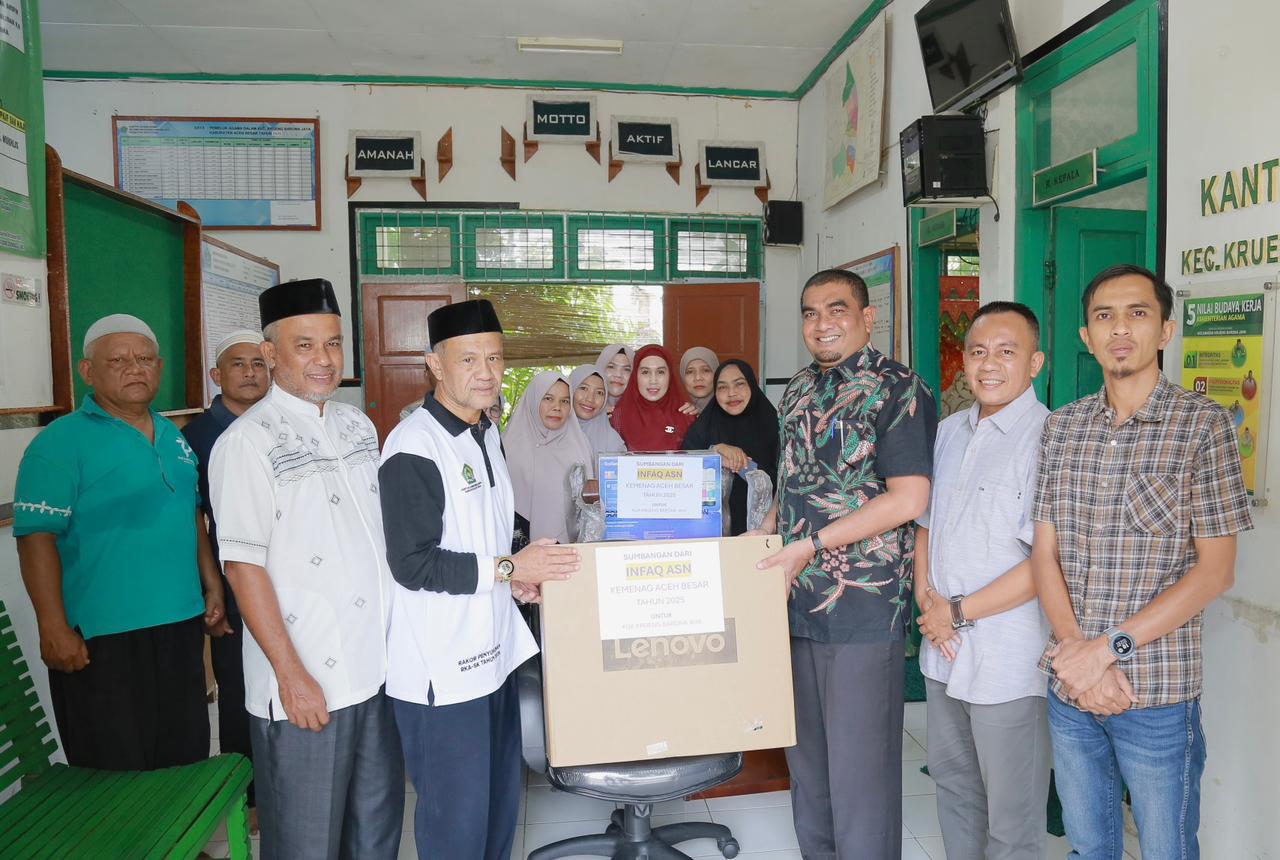DISTORI.ID – Kepala Kantor Kementerian Agama Kabupaten Aceh Besar Saifuddin menyalurkan sumbangan infaq dari Aparatur Sipil Negara (ASN) Kankemenag Aceh Besar untuk Kantor Urusan Agama (KUA) Kecamatan Krueng Barona Jaya, Jumat (12/9/2025).