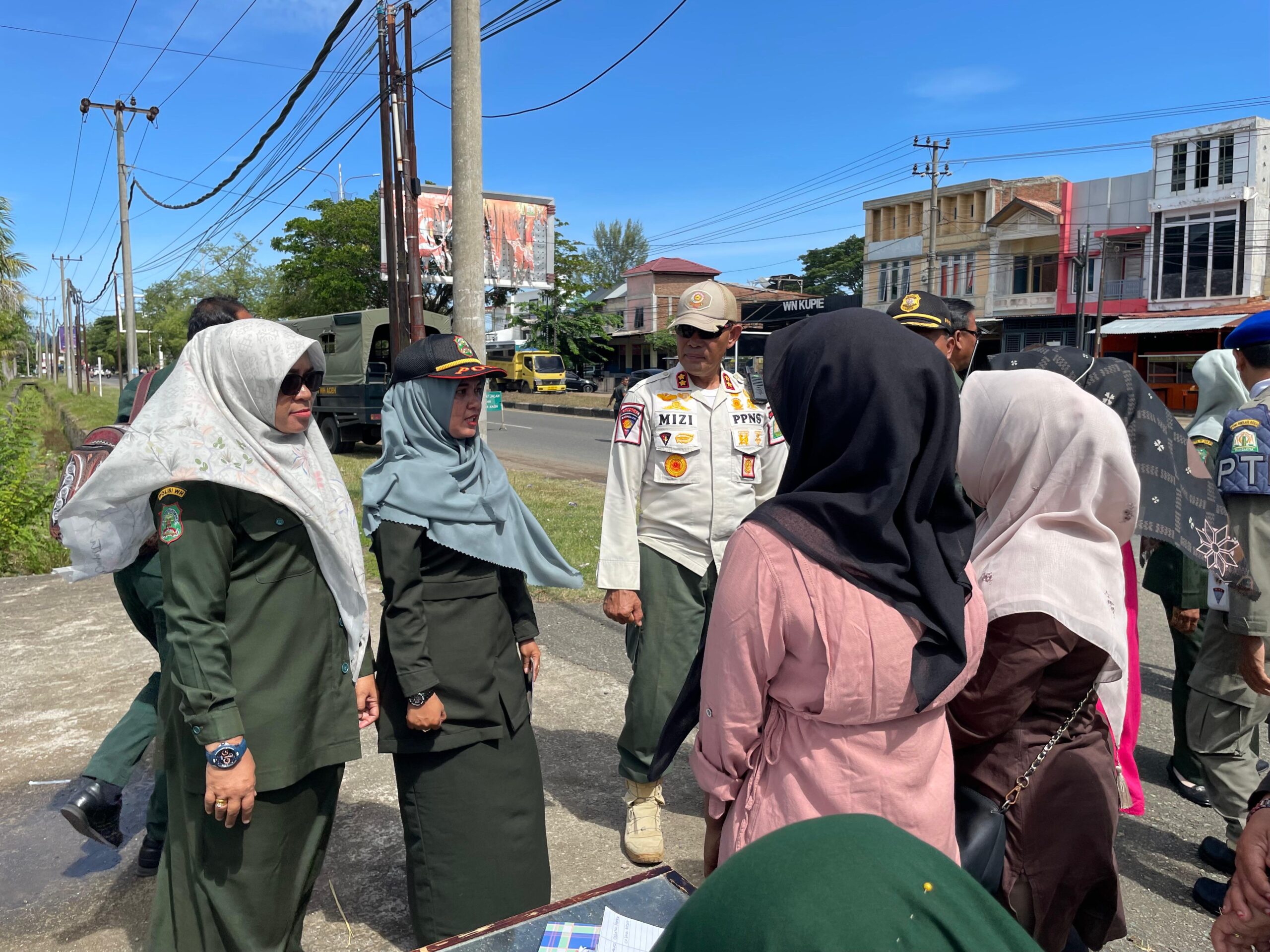 DISTORI.ID – Satuan Polisi Pamong Praja dan Wilayatul Hisbah (Satpol PP dan WH) Kabupaten Aceh Besar bersama Satpol PP dan WH Aceh serta melibatkan personel Pomdam Iskandar Muda dan Polresta Banda Aceh menggelar razia gabungan penegakan busana islami.
