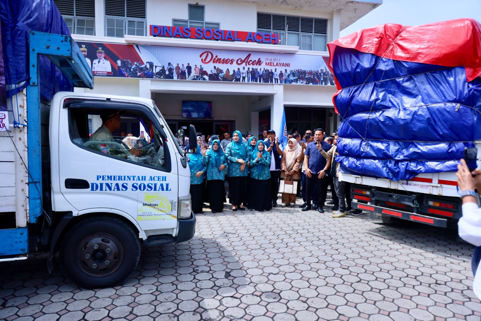 Prosesi pelepasan turut dihadiri oleh Persatuan Istri Anggota (PIA) DPR Aceh, anggota DPRA ini berlangsung di halaman Kantor Dinas Sosial Aceh, Rabu (22/10/2025).