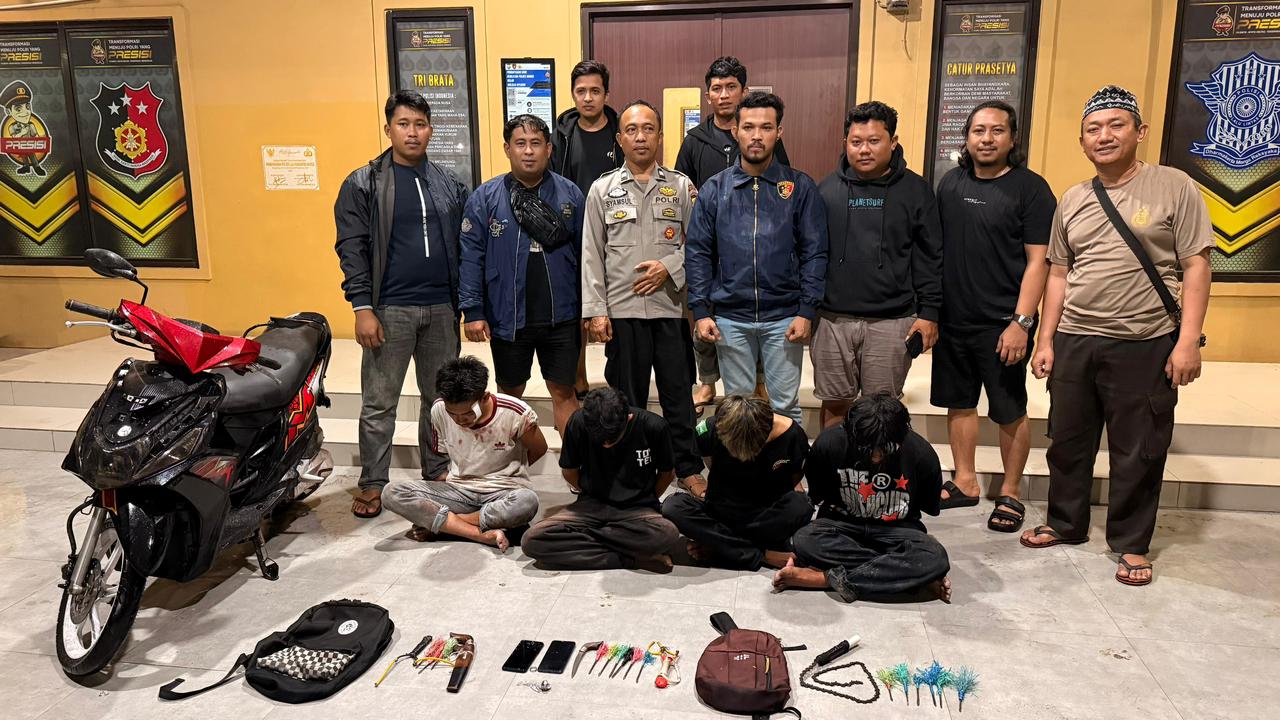 Adapun barang bukti yang diamankan di antaranya: 1 unit motor, 1 kunci ring modifikasi, 1 ponsel, 1 dompet cokelat, 1 linggis besi, dan 1 set alat isap sabu (bong dan pyrex).