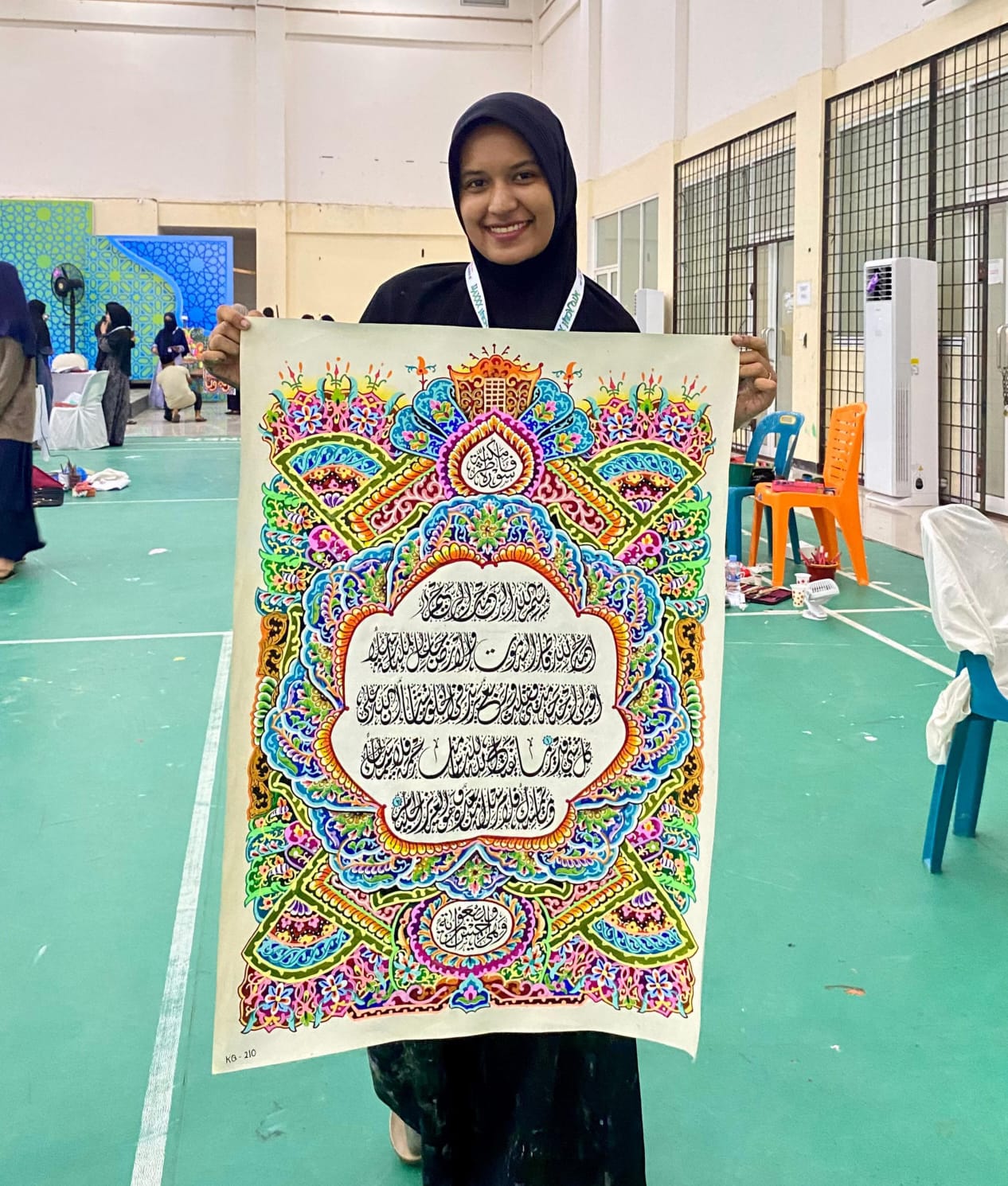 Berkat keteguhan dan kemampuan bakat seni lukis yang dimilikinya, remaja putri Aceh Besar alumni MAS Darul Ulum Kota Banda Aceh mulai menjajaki kemampuannya pada bidang seni kaligrafi (Khattil Qur’an).