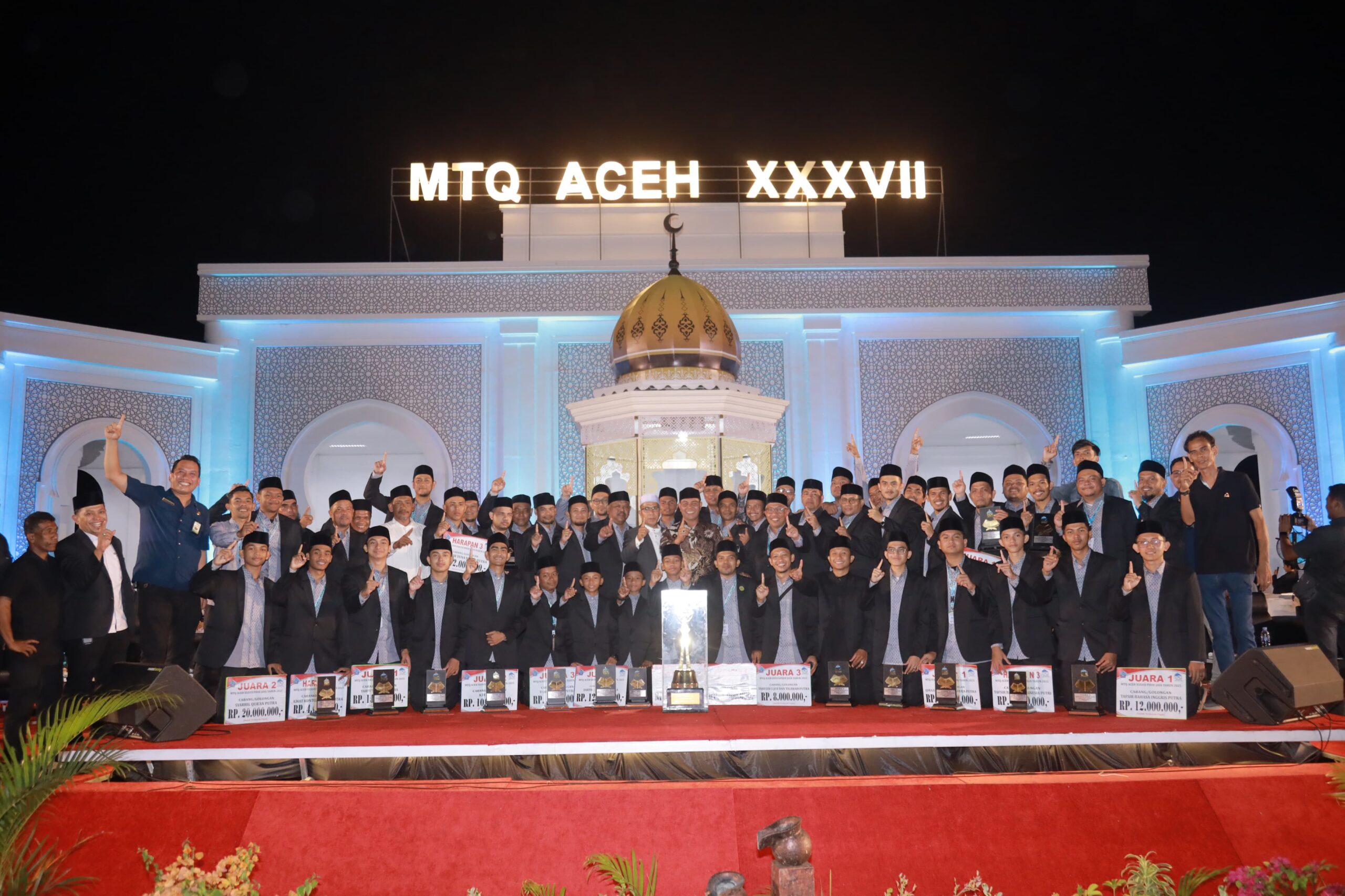 Bupati Aceh Besar H. Muharram Idris, yang akrab disapa Syech Muharram, menerima langsung piala bergilir Juara Umum dari Wakil Gubernur Aceh, Fadhlullah, yang menutup secara resmi pelaksanaan MTQ tersebut.