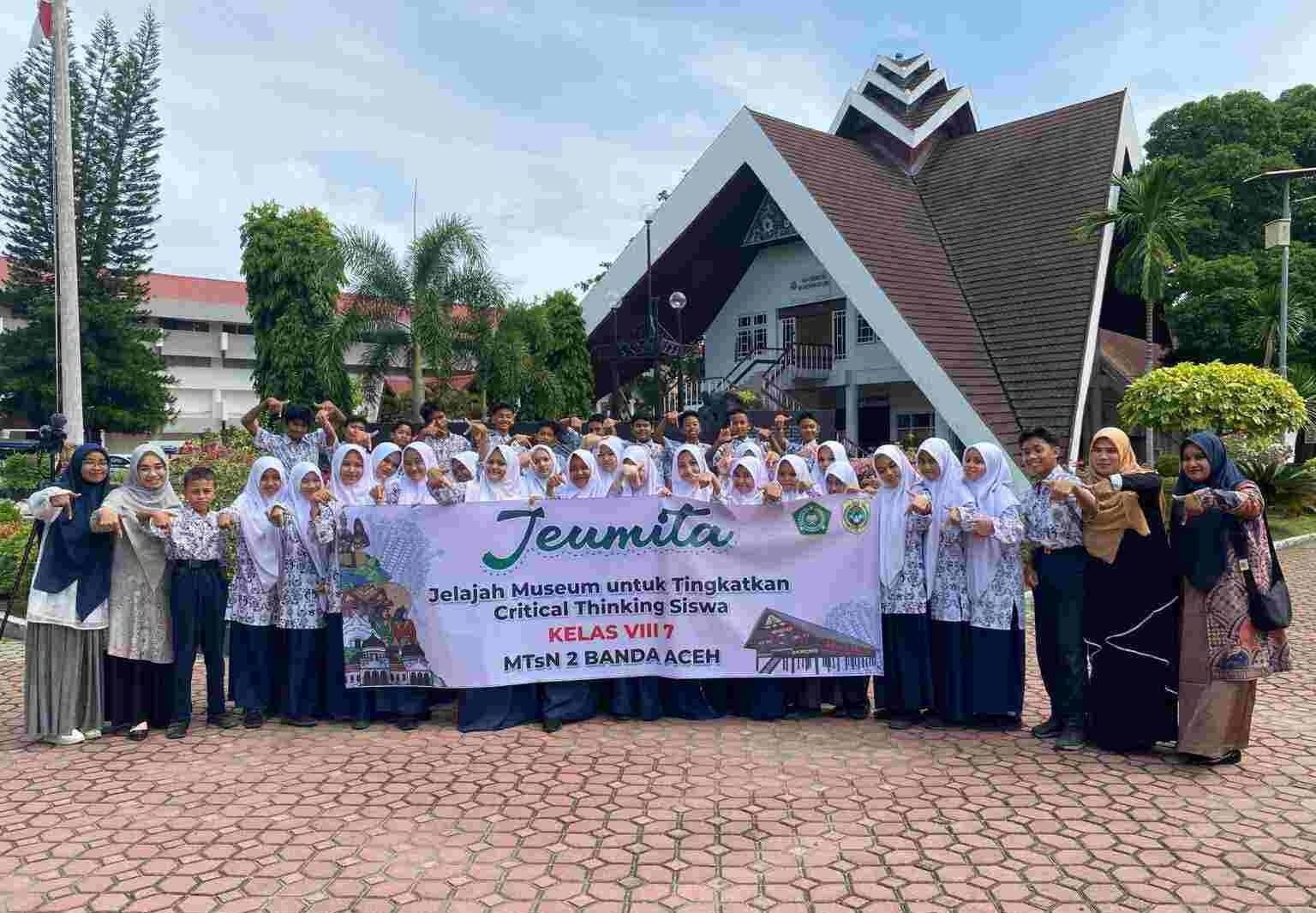DISTORI.ID – Sebanyak 34 siswa MTsN 2 Banda Aceh mengikuti kegiatan Jelajah Museum untuk Tingkatkan Critical Thinking Siswa (JEUMITA) di Museum Aceh, Kamis (13/11/2025). Program edukatif ini dirancang untuk mendorong kemampuan berpikir kritis melalui eksplorasi langsung terhadap artefak dan situs sejarah.