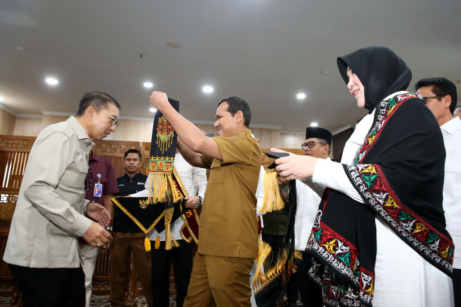DISTORI.ID – Wali Kota Banda Aceh Illiza Sa’aduddin Djamal bersama Wakil Wali Kota Afdhal Khalilullah dan sejumlah pejabat teras Pemko Banda Aceh menyambut kedatangan Menteri Kebudayaan RI Fadli Zon di area maulid raya, Senin (24/11/2025) siang.
