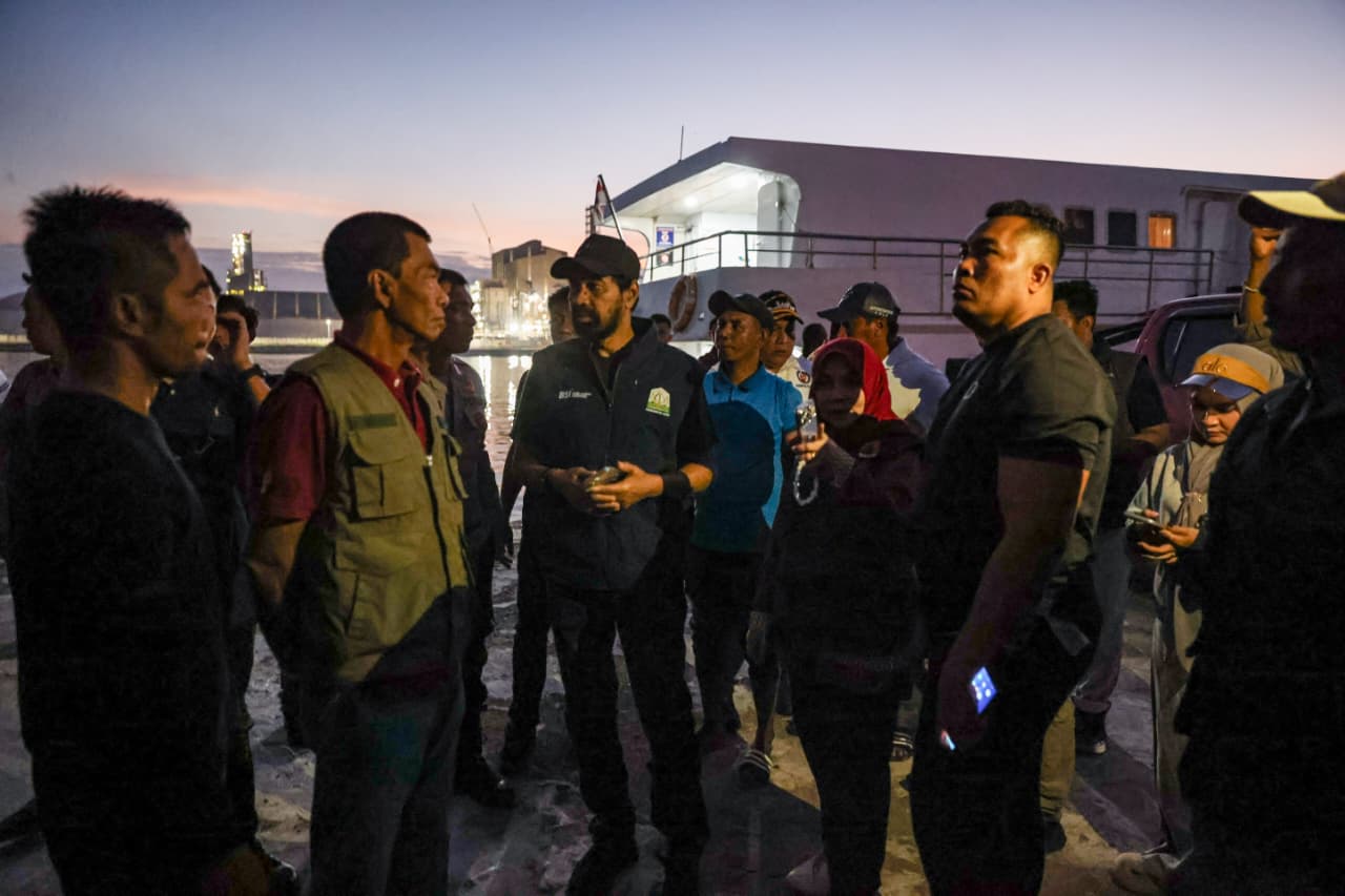 Selain kapal Express Bahari, Mualem juga memantau proses bongkar muat logistik yang dibawa menggunakan kapal milik Basarnas yang lebih dulu sandar di pelabuhan tersebut.