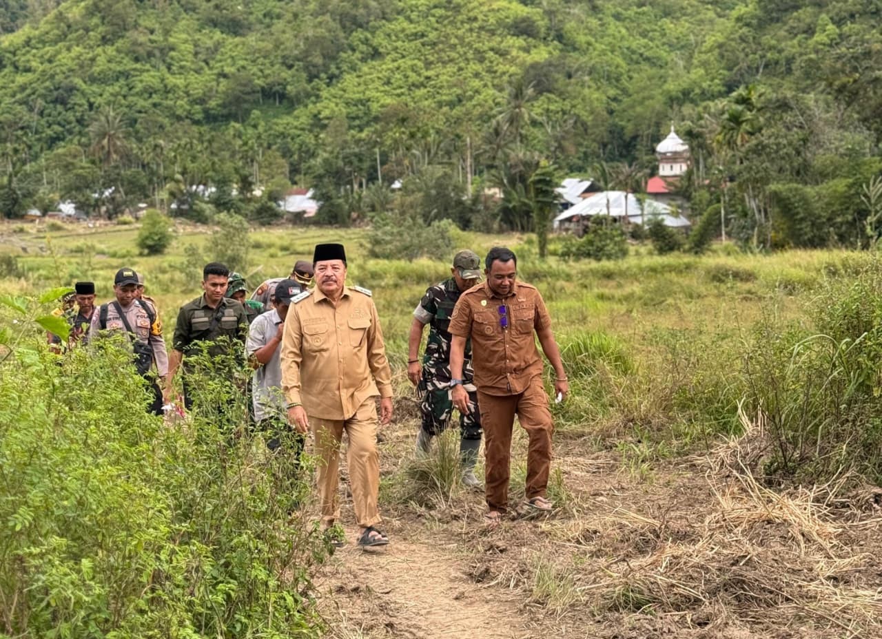 Di tengah kondisi medan yang terjal dan berlumpur akibat material sisa banjir, Bupati TRK langsung meninjau pemukiman warga untuk melihat situasi riil dan mengidentifikasi kebutuhan mendesak di titik terdampak paling parah.