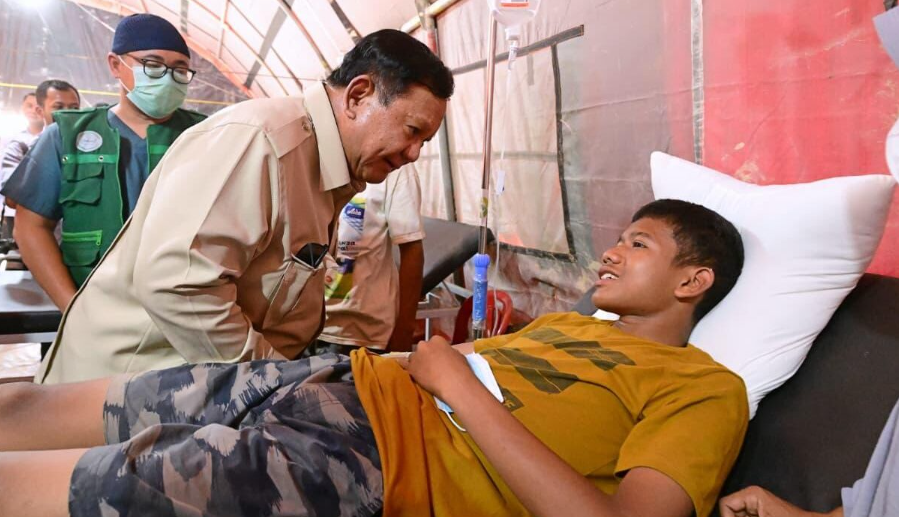 Setelahnya Presiden Prabowo menuju posko kesehatan yang tengah memberikan layanan medis kepada warga terdampak.