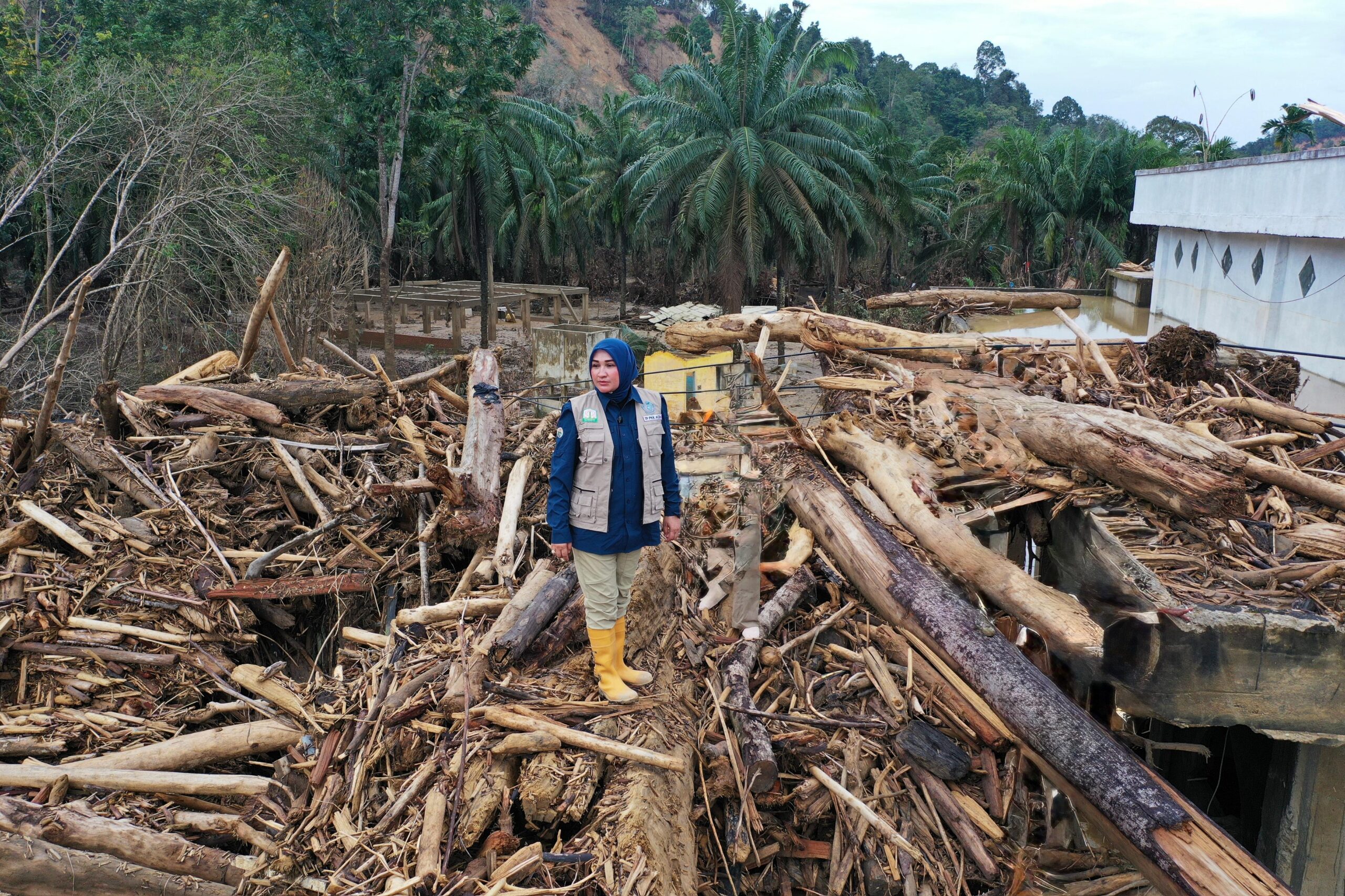 “Ada lebih 200 rumah di Kampung Lubuk Sidup, semuanya hancur diterjang bandang. Hanya Masjid Nurussalam yang berdiri kokoh di antara gelondongan kayu sisa bandang,” ujar Kak Na.