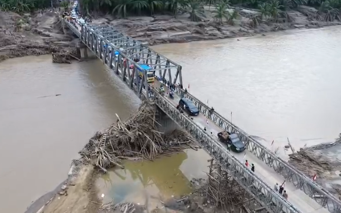 Jembatan tersebut sebelumnya terputus akibat bencana alam banjir bandang dan tanah longsor yang melanda sebagian wilayah Provinsi Aceh, sehingga mengganggu akses transportasi dan aktivitas masyarakat.