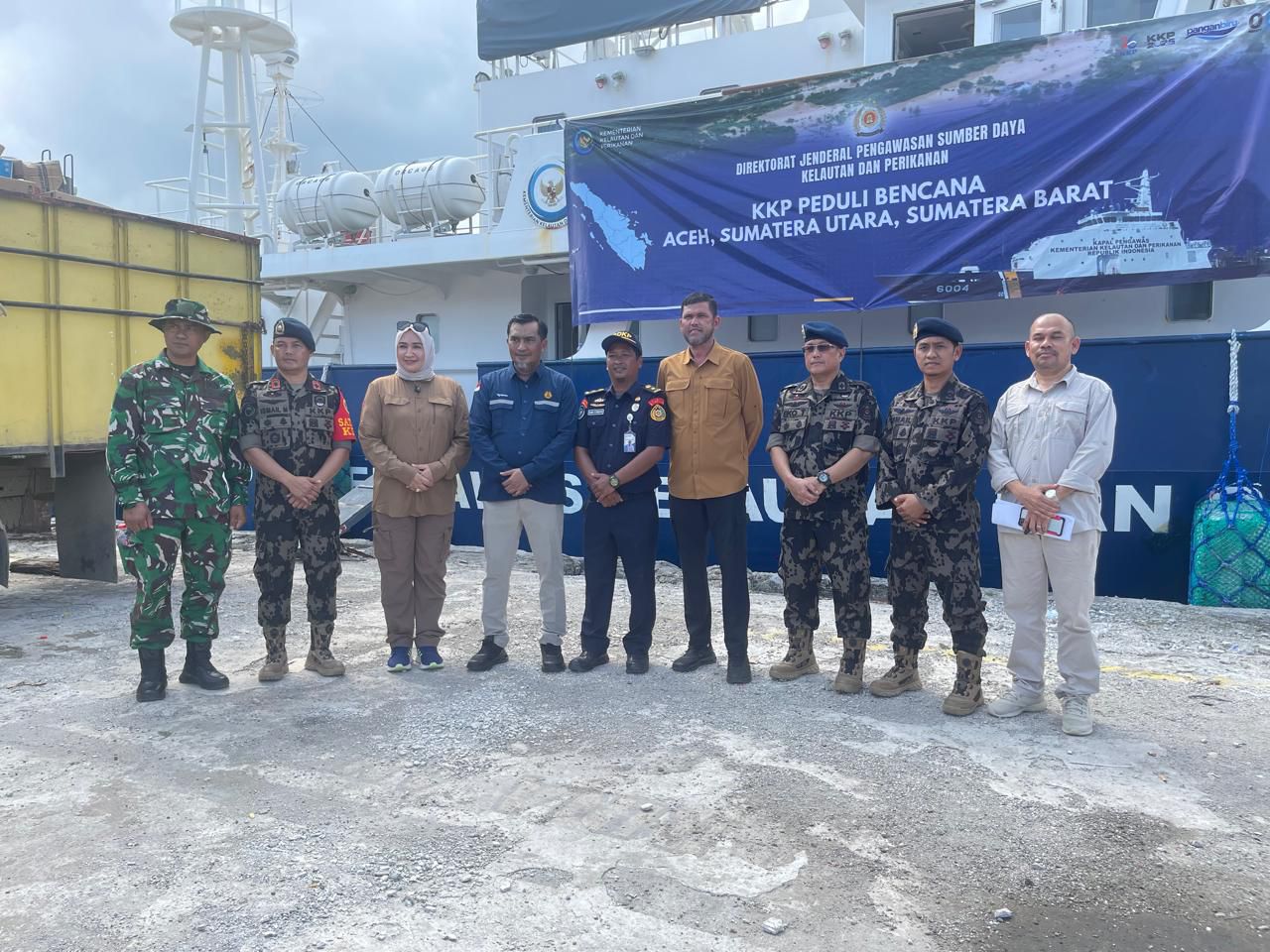 Bantuan yang tiba dengan Kapal Orca 6 milik KKKP Selasa pagi tanggal 23 Desember 2025 yang dimuat kedalam 2 truk berisi beragam barang kebutuhan mendasar untuk meringankan beban pengungsi, antara lain pakaian layak pakai, perlengkapan shalat (sajadah dan mukena), kain sarung, paket makanan siap konsumsi, perlengkapan bayi (popok, susu, dan peralatan kebersihan), serta air minum dalam kemasan.