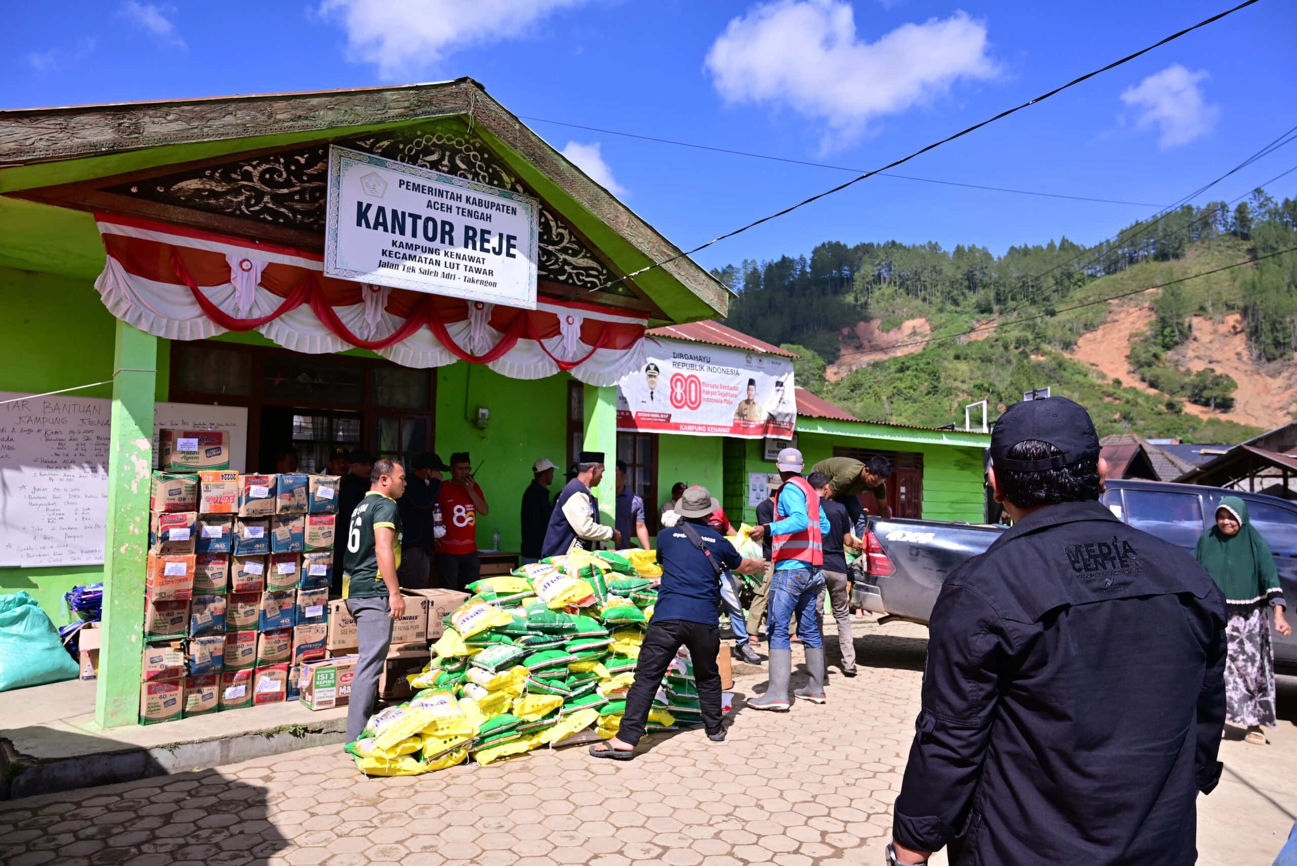 DISTORI.ID – Ketua TP PKK Kabupaten Aceh Jaya, Ny. Desi Maulidar, dan Istri Ketua DPRK Aceh Jaya, Ny. Yushani mendistribusikan bantuan bagi warga terdampak bencana di Desa Kenawat, Kecamatan Lut Tawar, Kabupaten Aceh Tengah, Rabu (24/12/2025).