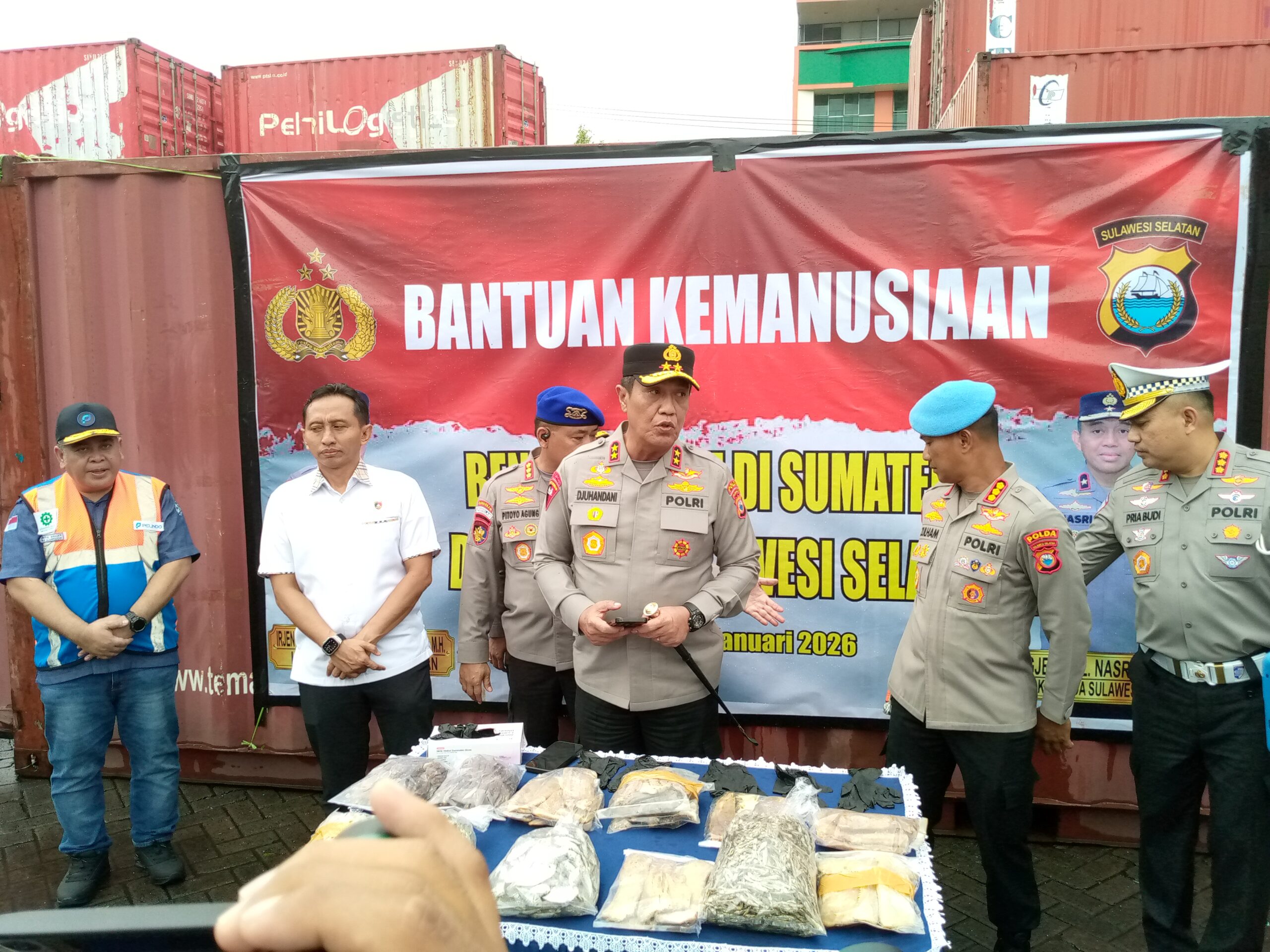 Pengiriman pun disaksikan langsung oleh Kapolda Sulsel Irjen Pol Djuhandhani Rahardjo Puro, di Pelabuhan Soekarno-Hatta Kota Makassar pada Rabu (21/1/2026).