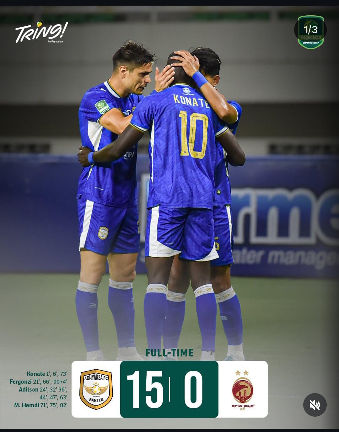 Gol demi gol kembali tercipta, dengan Silva, Konate, Hamdi, dan Fergonzi menjadi aktor utama pesta gol. Hingga peluit panjang dibunyikan, papan skor menunjukkan angka mencengangkan 15-0.