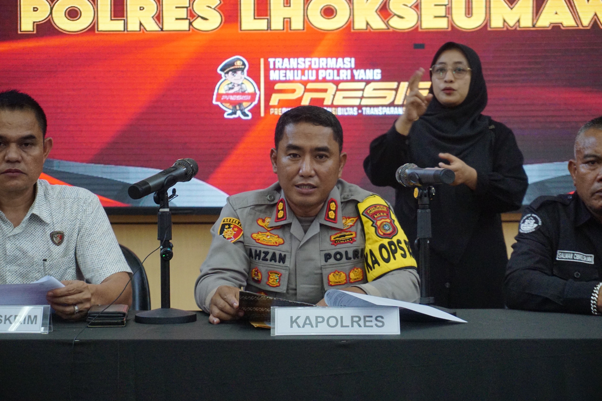Keterangan tersebut disampaikan langsung oleh Kapolres Lhokseumawe AKBP Ahzan, saat konferensi pers yang digelar di Gedung Serbaguna Polres Lhokseumawe, Kamis siang (5/2/2026), didampingi Kasat Reskrim Bustani., dan Kasi Humas Polres Lhokseumawe Salman Alfarasi.