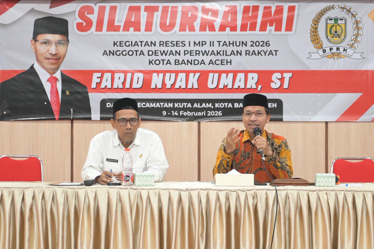 DISTORI.ID – Ketua Komisi IV DPRK Banda Aceh, Farid Nyak Umar, menggelar reses I masa persidangan II bersama warga di Aula Gedung Bapelkes Banda Aceh, Rabu 11 Februari 2026.