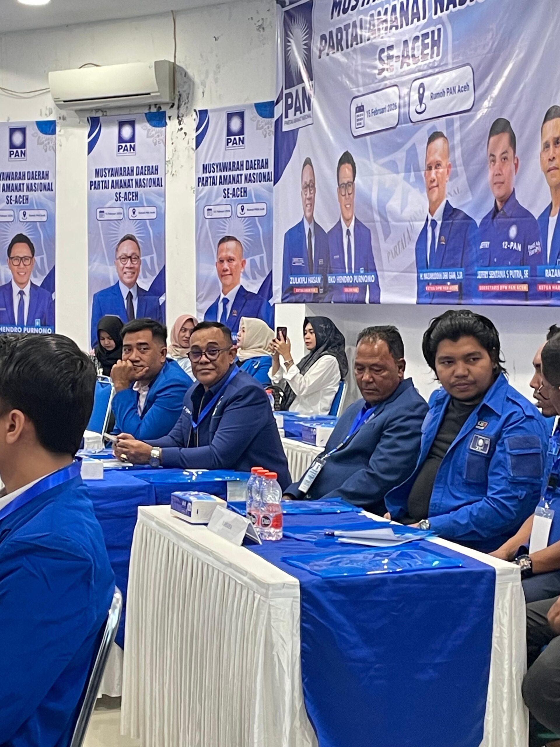 Penunjukan tersebut berlangsung pada Musyawarah Daerah (Musda) VI secara serentak di seluruh Kabupaten Kota se – Aceh yang berlangsung di Rumoh DPW PAN Aceh Kota Banda Aceh, Minggu,(15/2/2026).